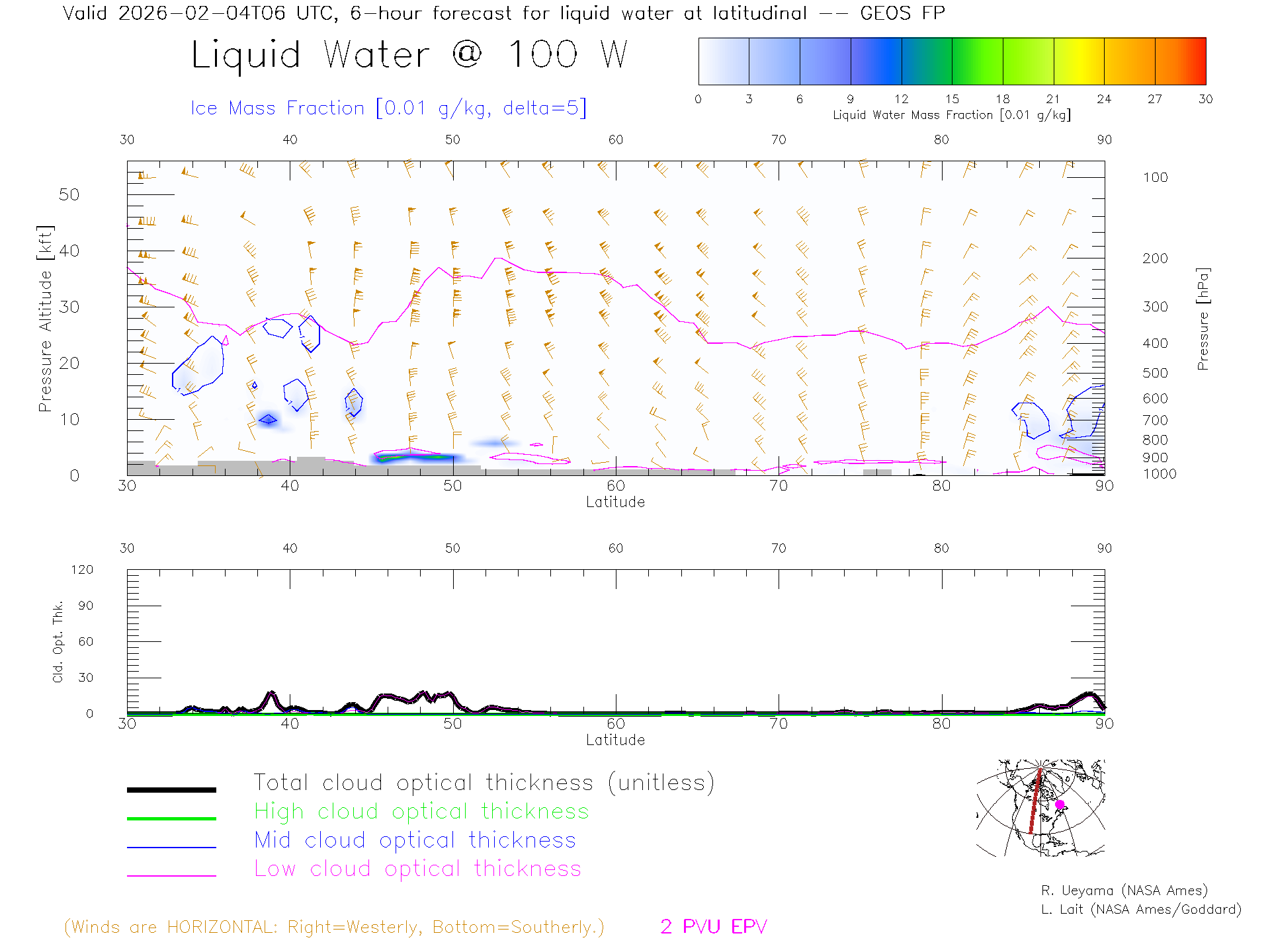 GEOS Forecast Cloud Water Content X-Section (100 W)
