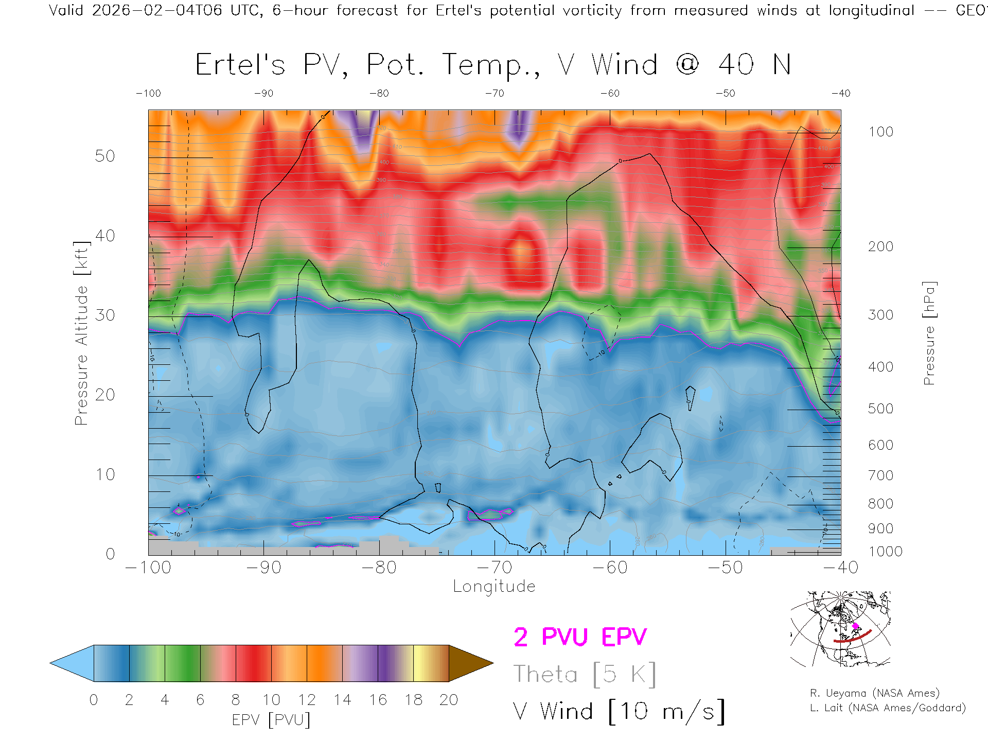 GEOS Forecast PV X-Section (40 N)
