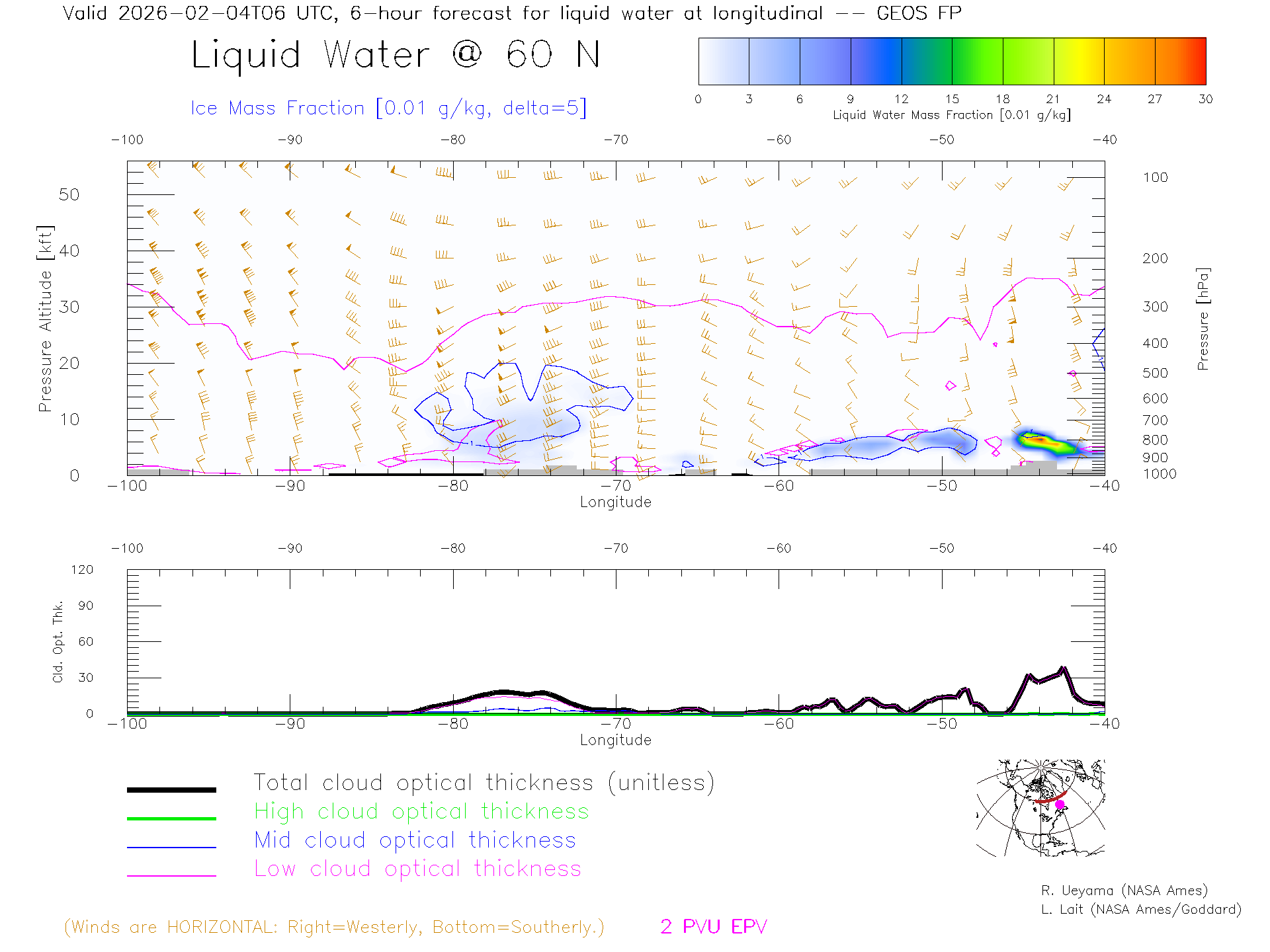 GEOS Forecast Cloud Water Content X-Section (60 N)