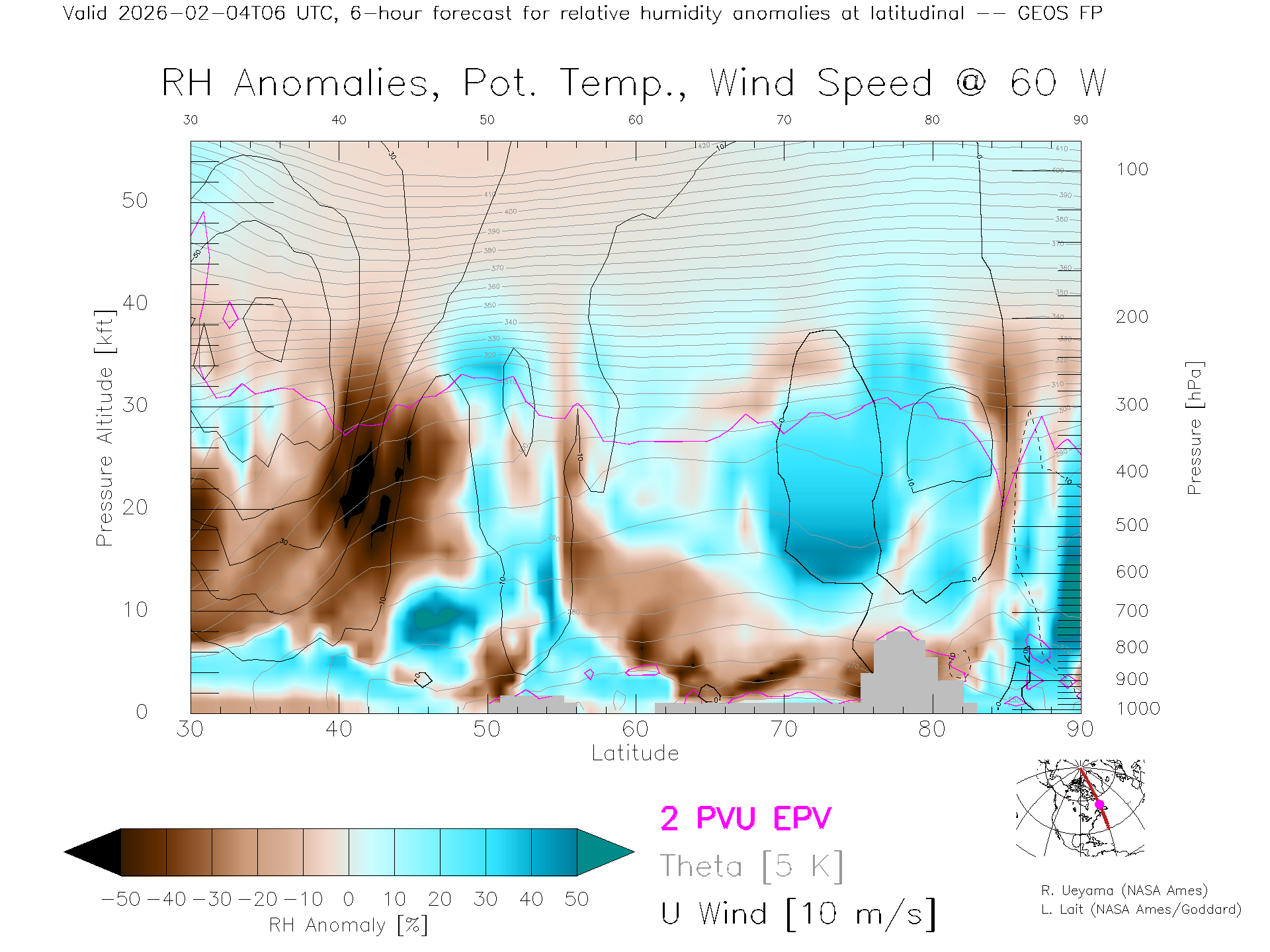 GEOS Forecast Rel. Hum. X-Section (60 W)