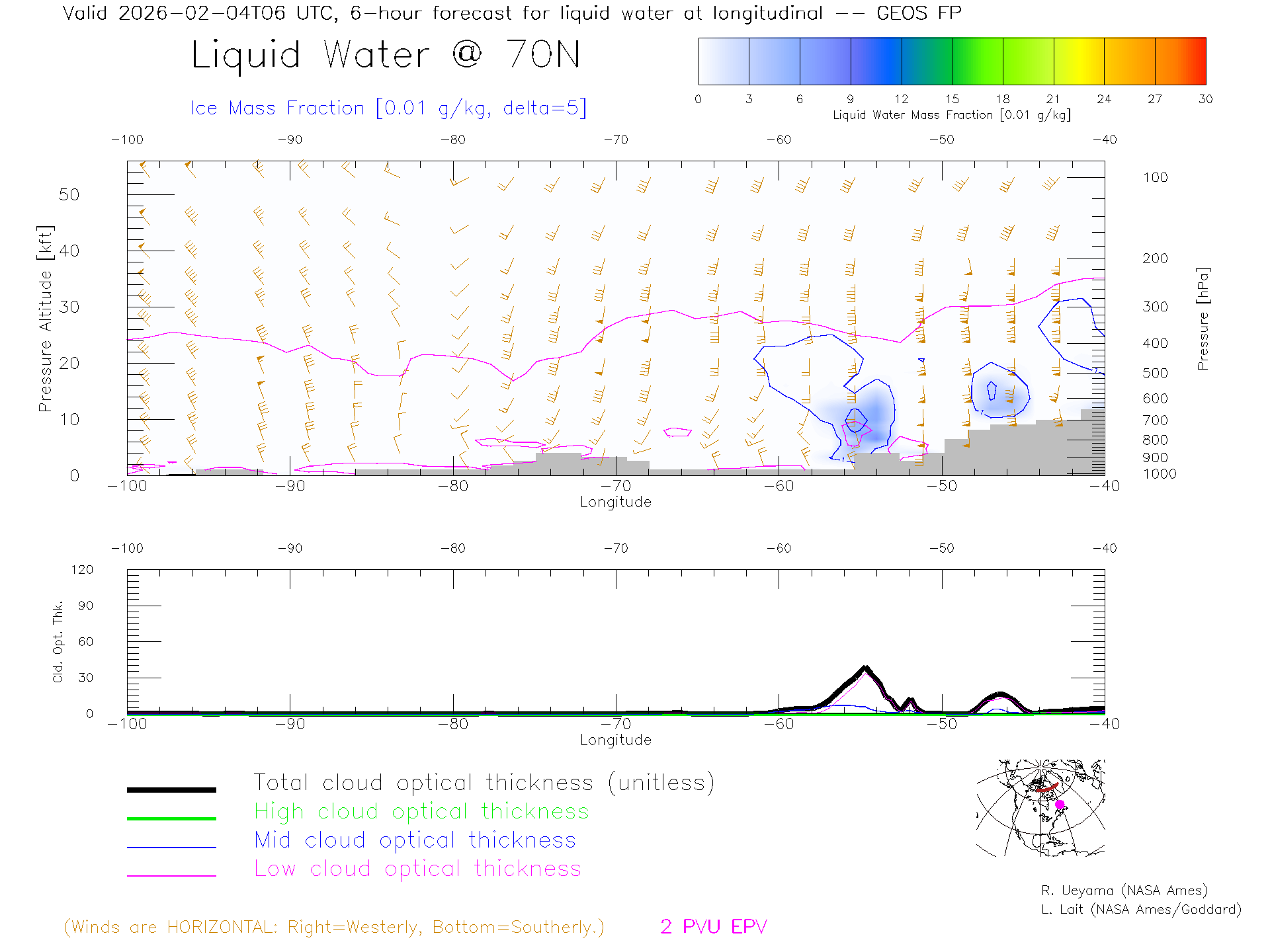 GEOS Forecast Cloud Water Content X-Section (70 N)