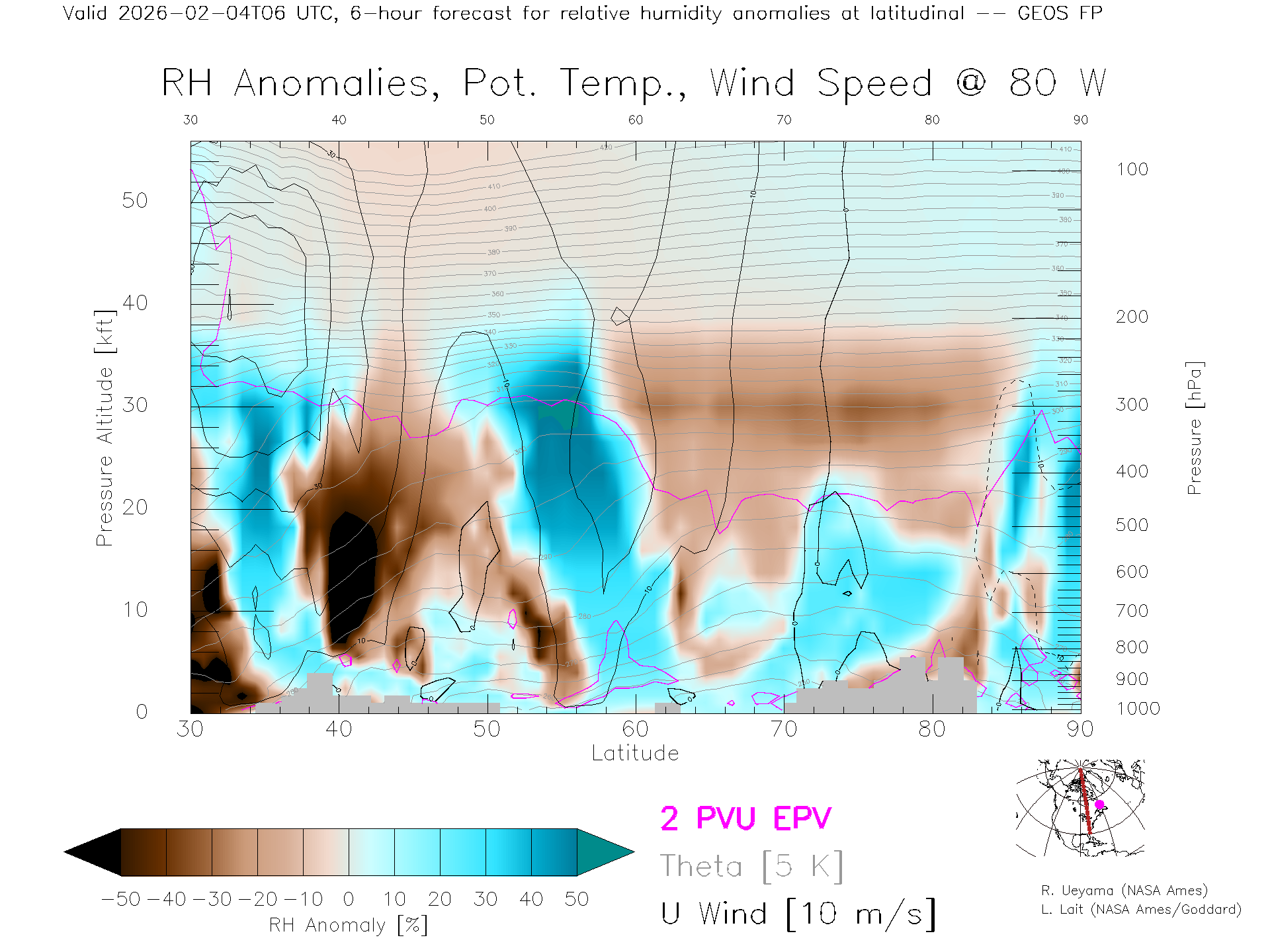 GEOS Forecast Rel. Hum. X-Section (80 W)