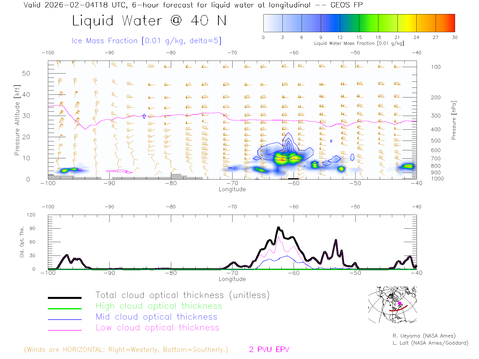GEOS Forecast Cloud Water Content X-Section (40 N)