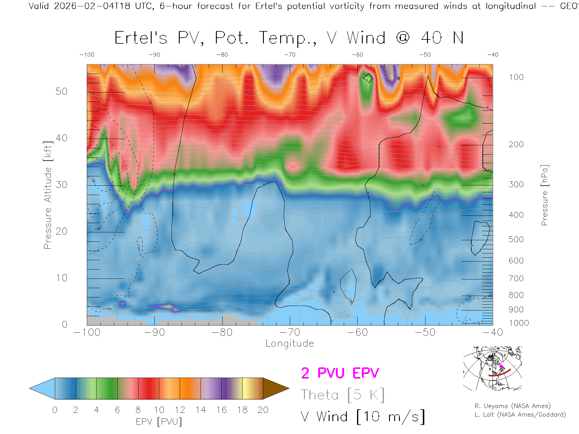 GEOS Forecast PV X-Section (40 N)