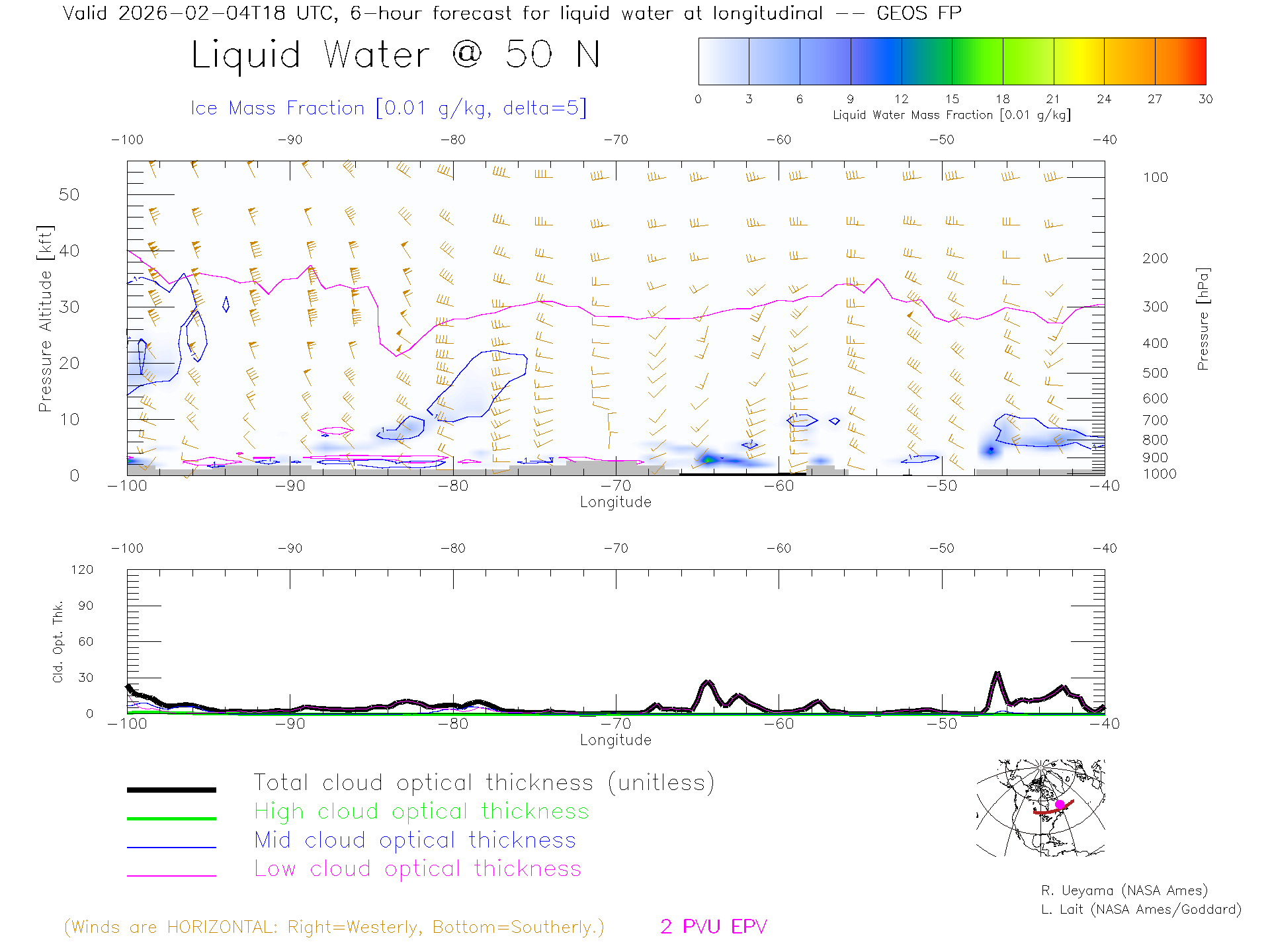 GEOS Forecast Cloud Water Content X-Section (50 N)