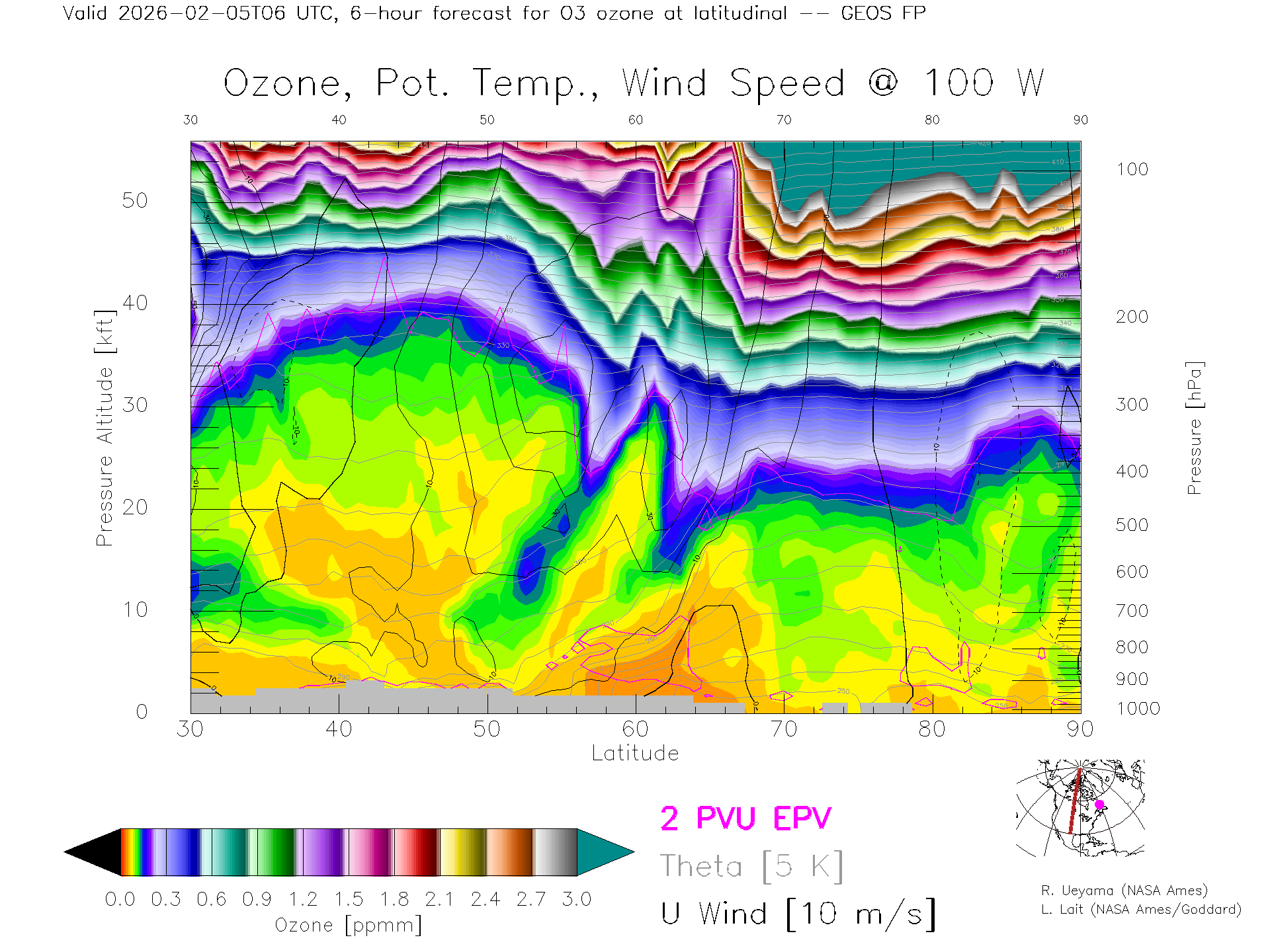 GEOS Forecast Ozone X-Section (100 W)