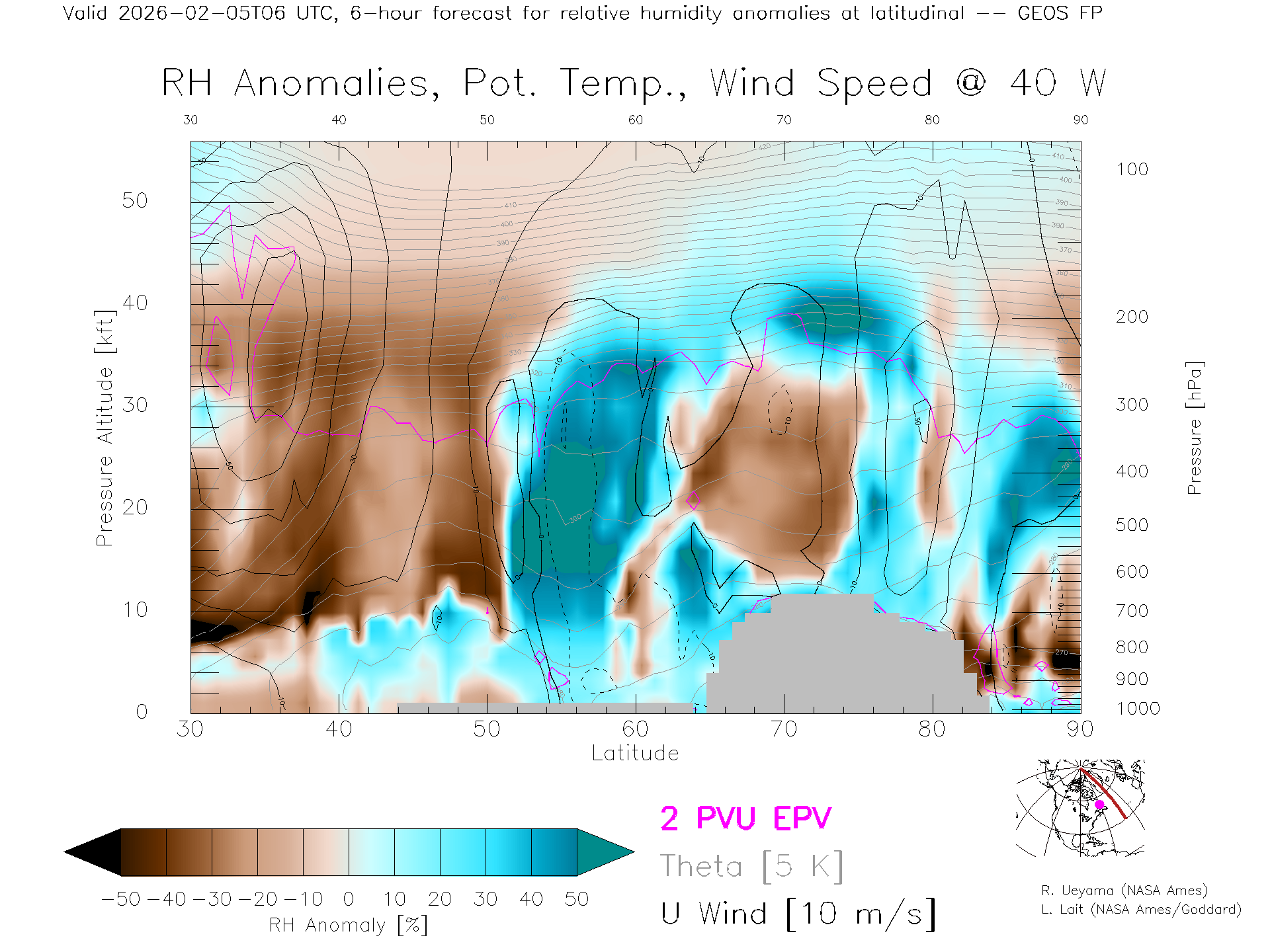 GEOS Forecast Rel. Hum. X-Section (40 W)