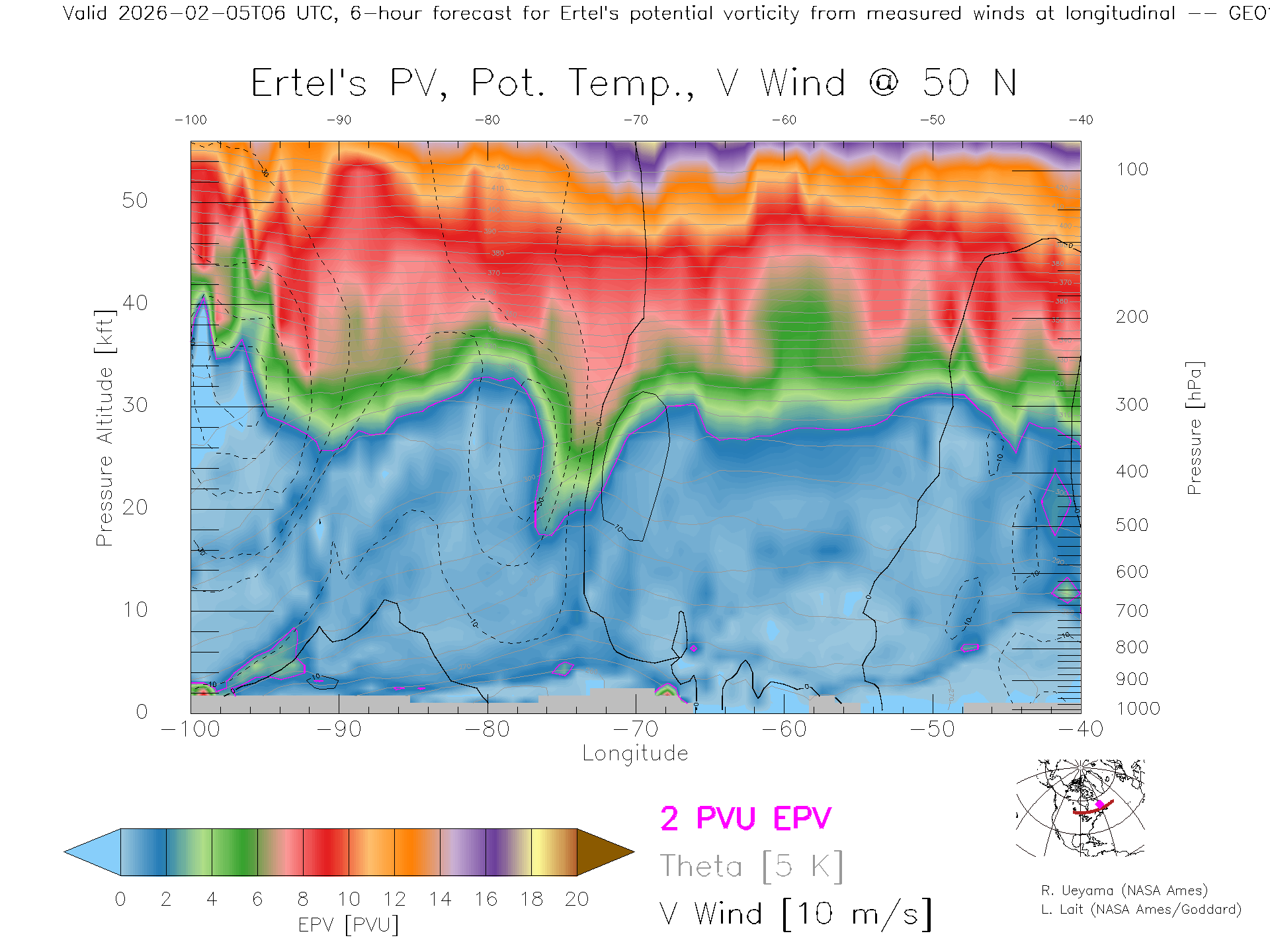 GEOS Forecast PV X-Section (50 N)