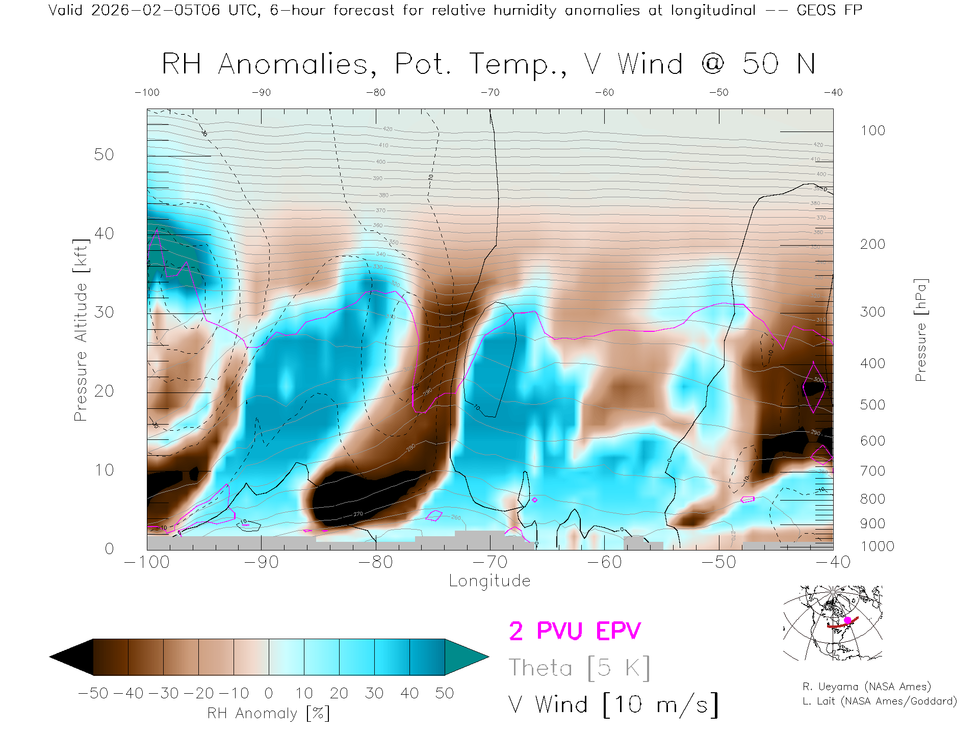 GEOS Forecast Rel. Hum. X-Section (50 N)