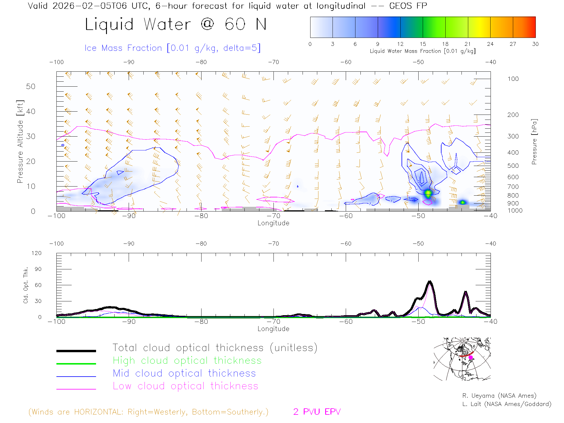 GEOS Forecast Cloud Water Content X-Section (60 N)
