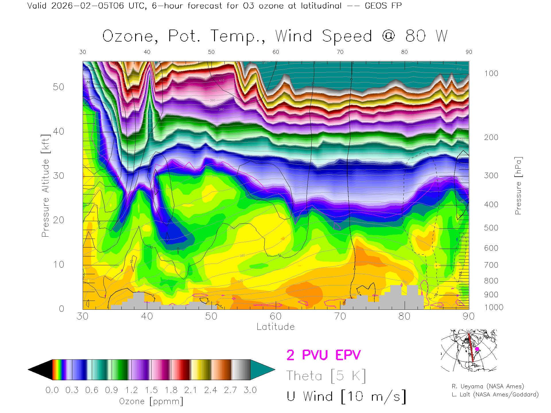 GEOS Forecast Ozone X-Section (80 W)