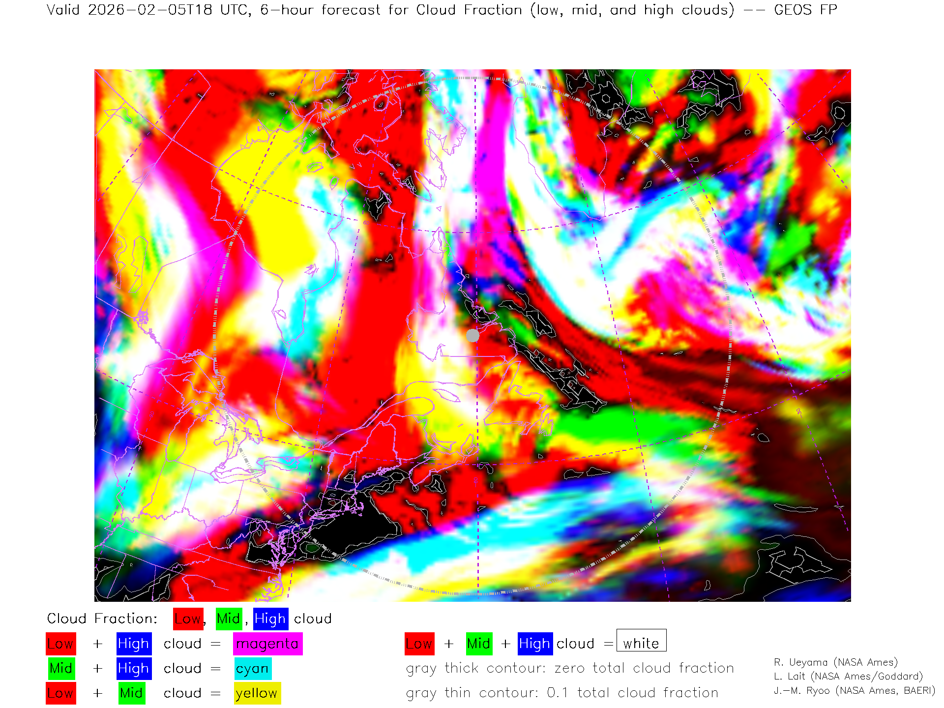 GEOS Forecast Low-, Mid- and High-level Cloud Fraction