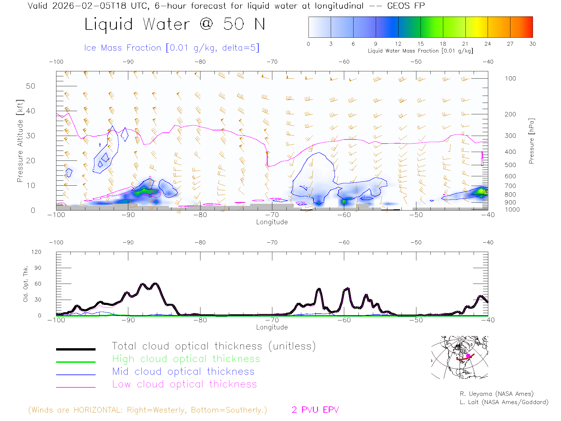 GEOS Forecast Cloud Water Content X-Section (50 N)