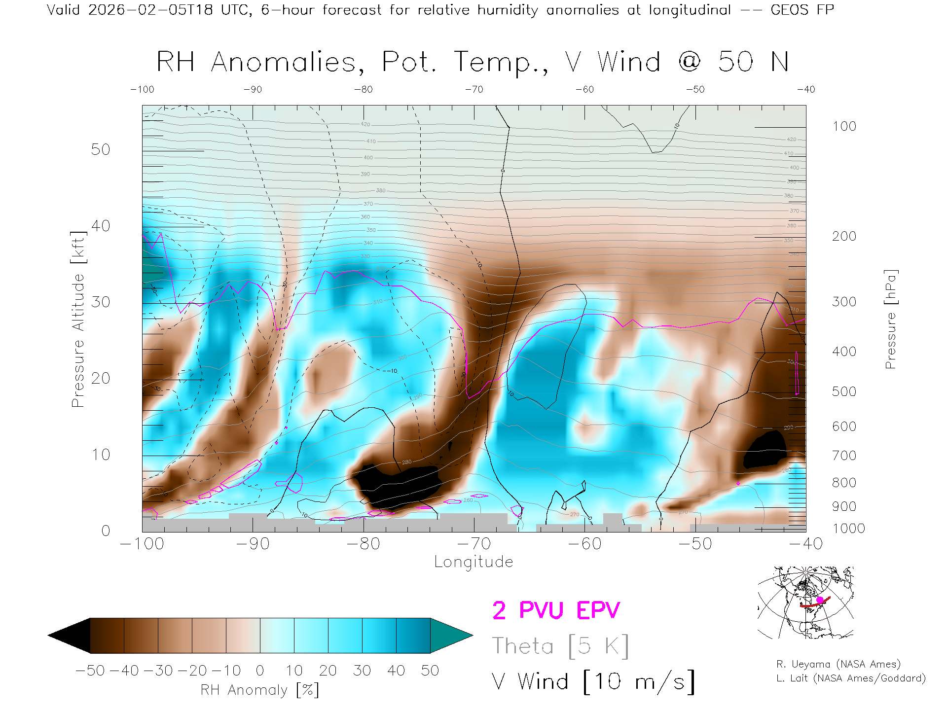 GEOS Forecast Rel. Hum. X-Section (50 N)