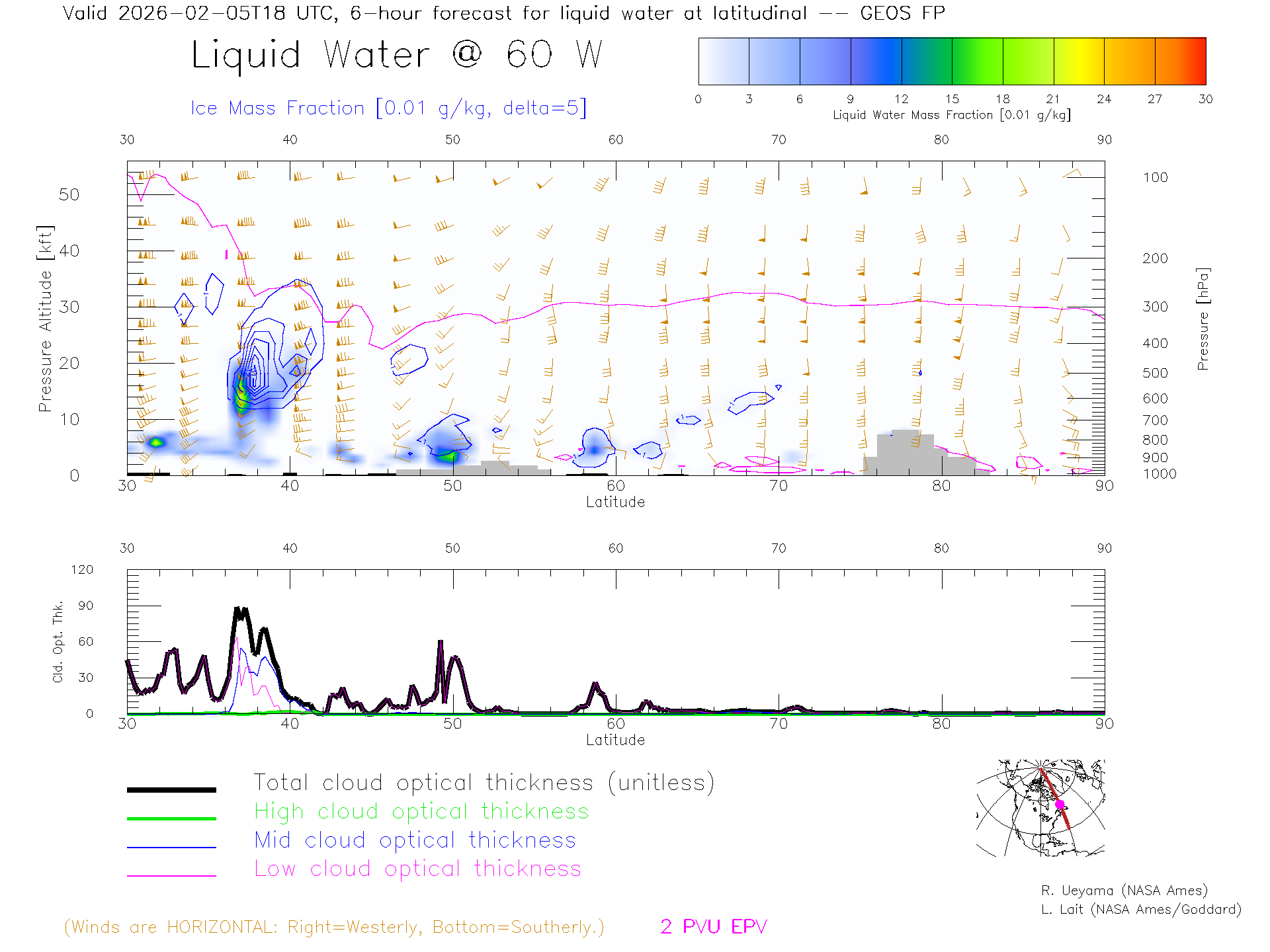 GEOS Forecast Cloud Water Content X-Section (60 W)