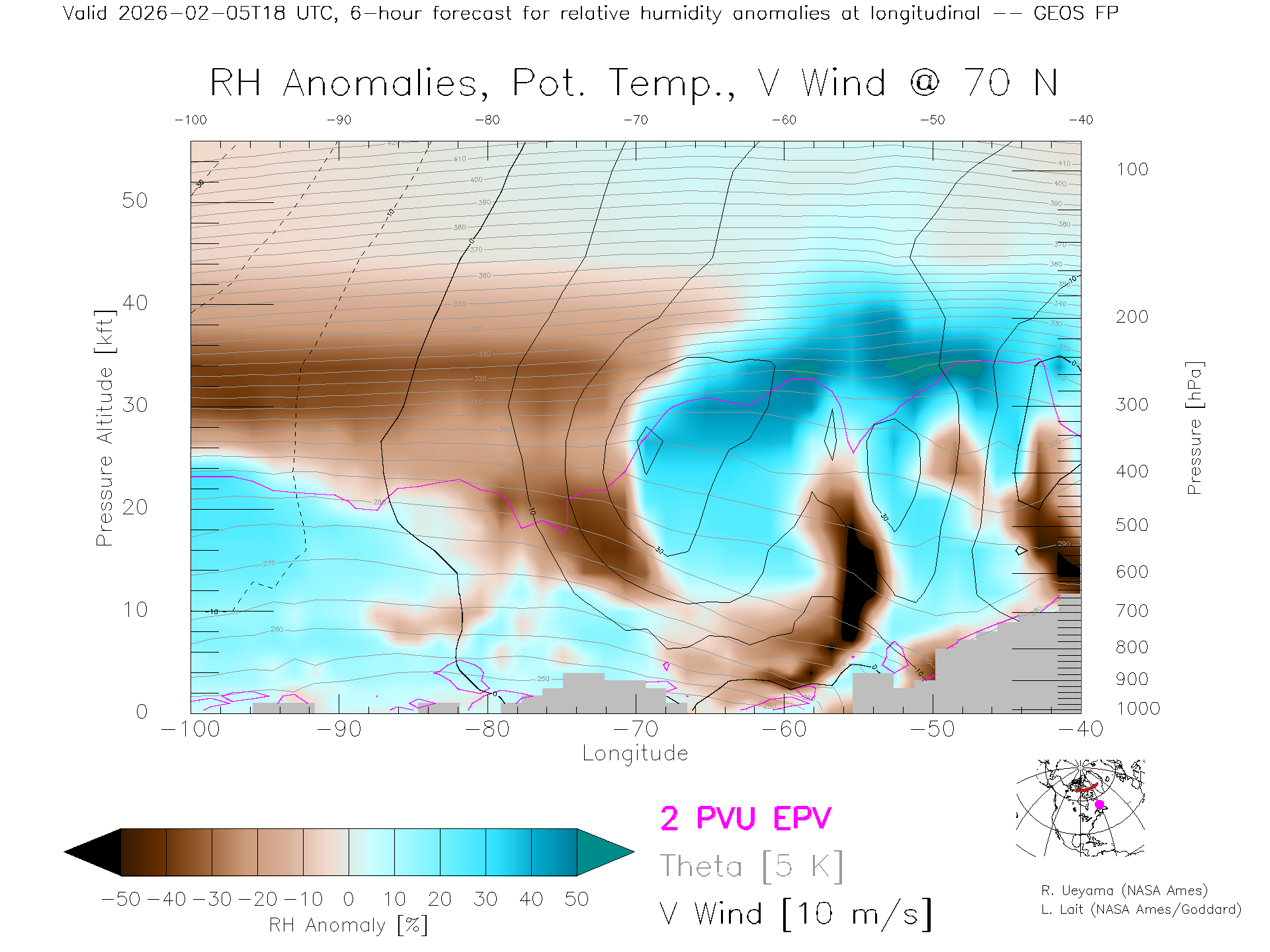 GEOS Forecast Rel. Hum. X-Section (70 N)