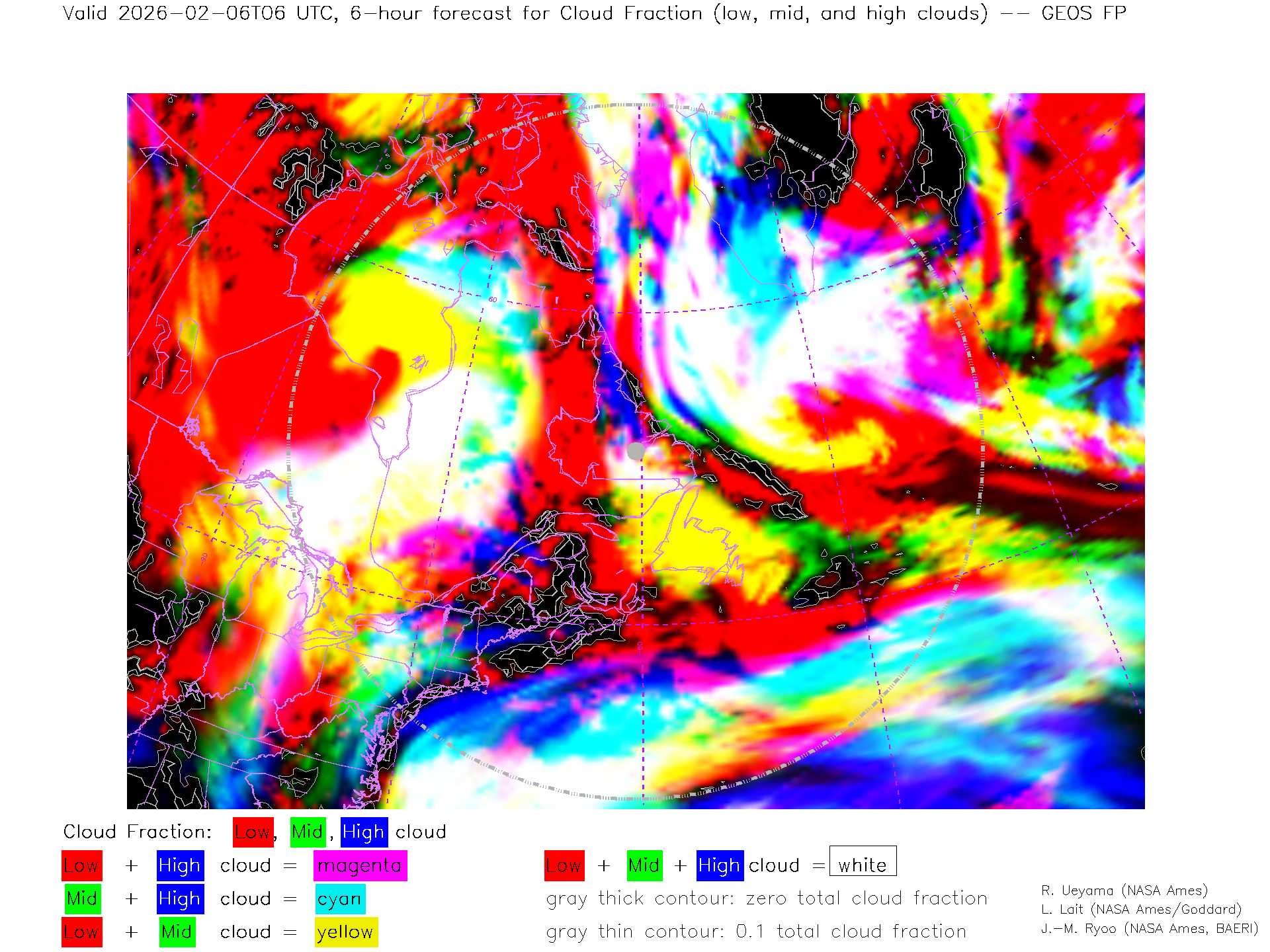GEOS Forecast Low-, Mid- and High-level Cloud Fraction