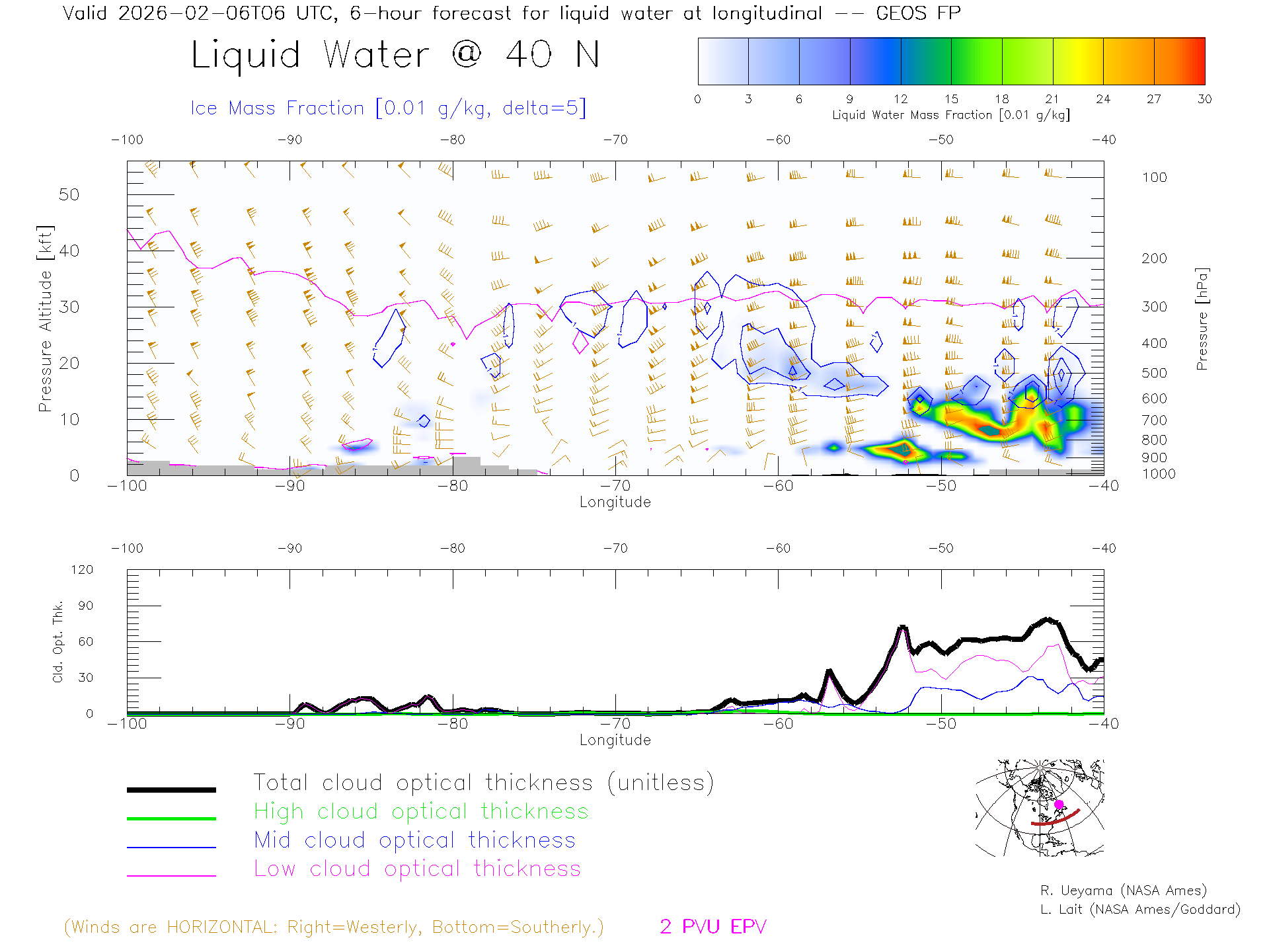 GEOS Forecast Cloud Water Content X-Section (40 N)