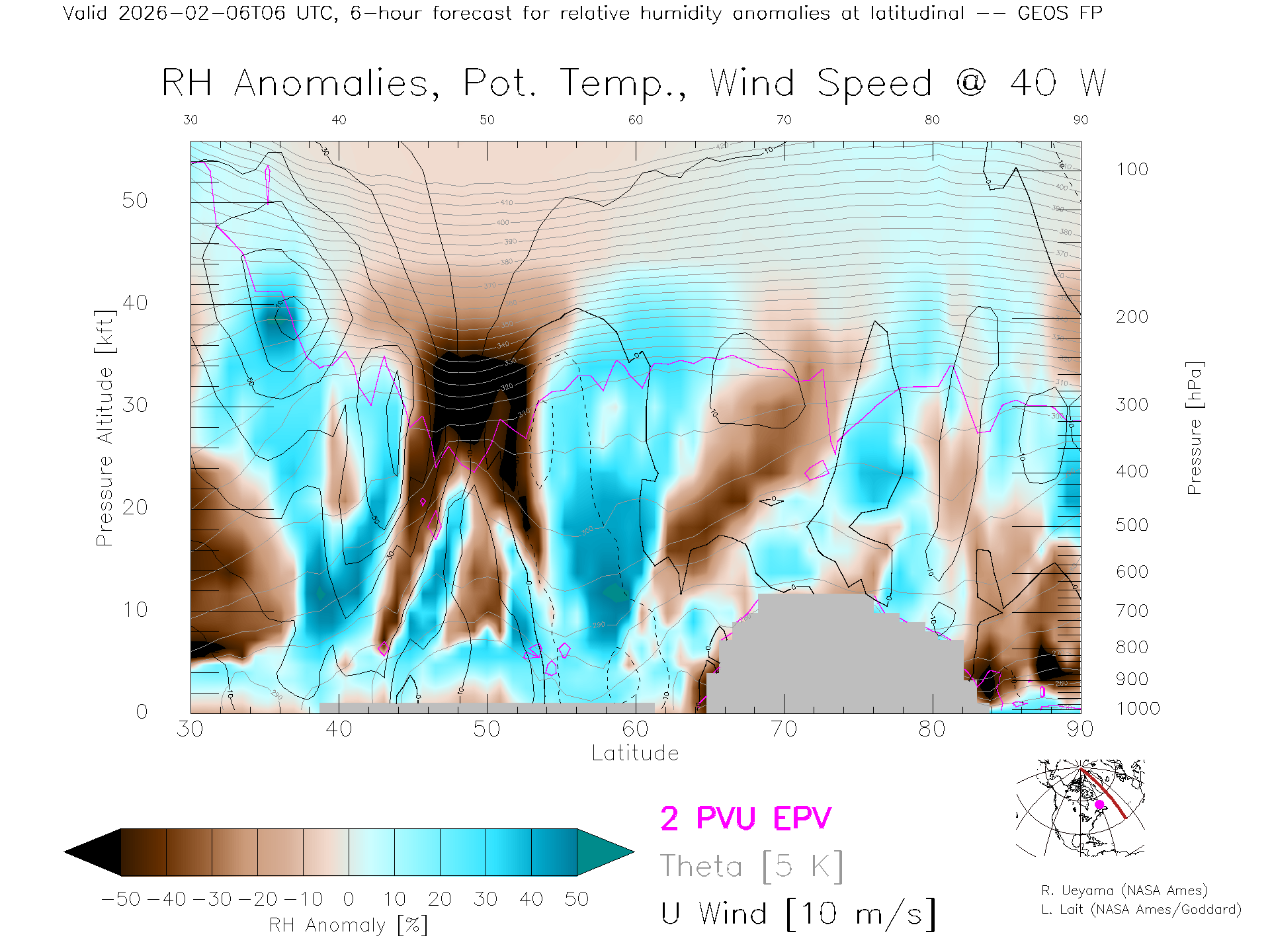 GEOS Forecast Rel. Hum. X-Section (40 W)