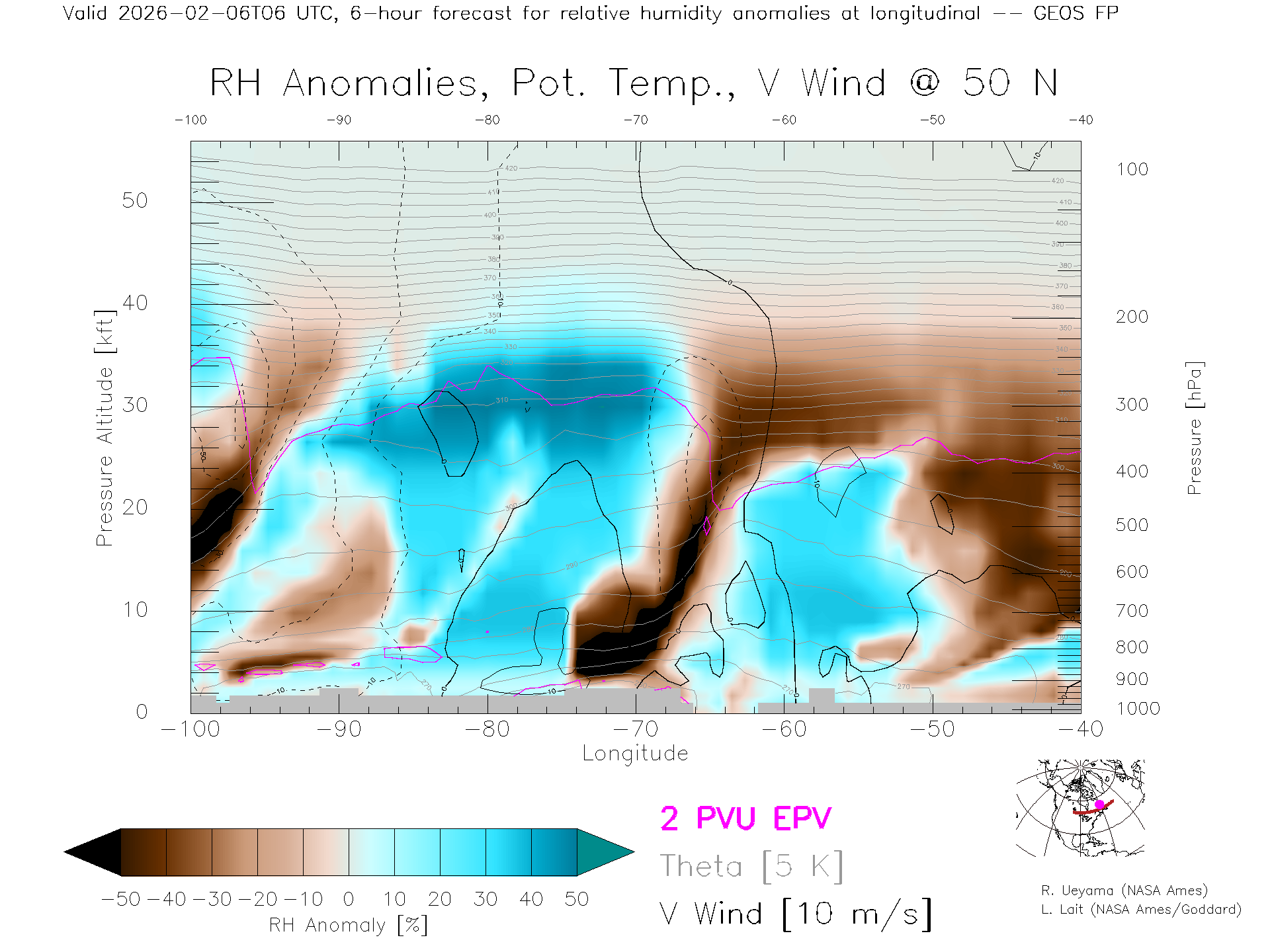 GEOS Forecast Rel. Hum. X-Section (50 N)