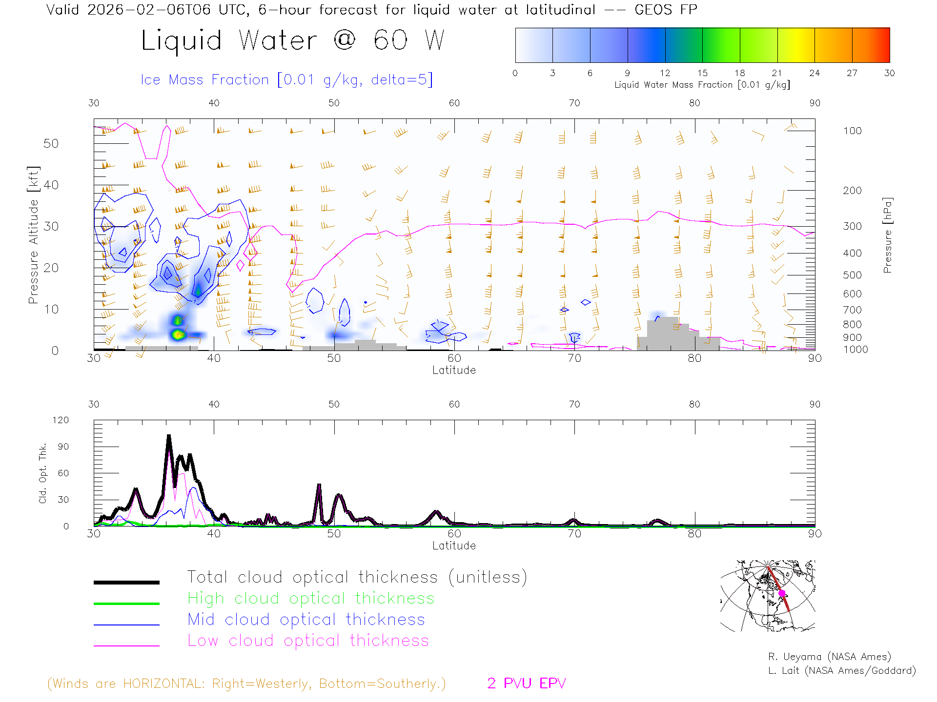 GEOS Forecast Cloud Water Content X-Section (60 W)