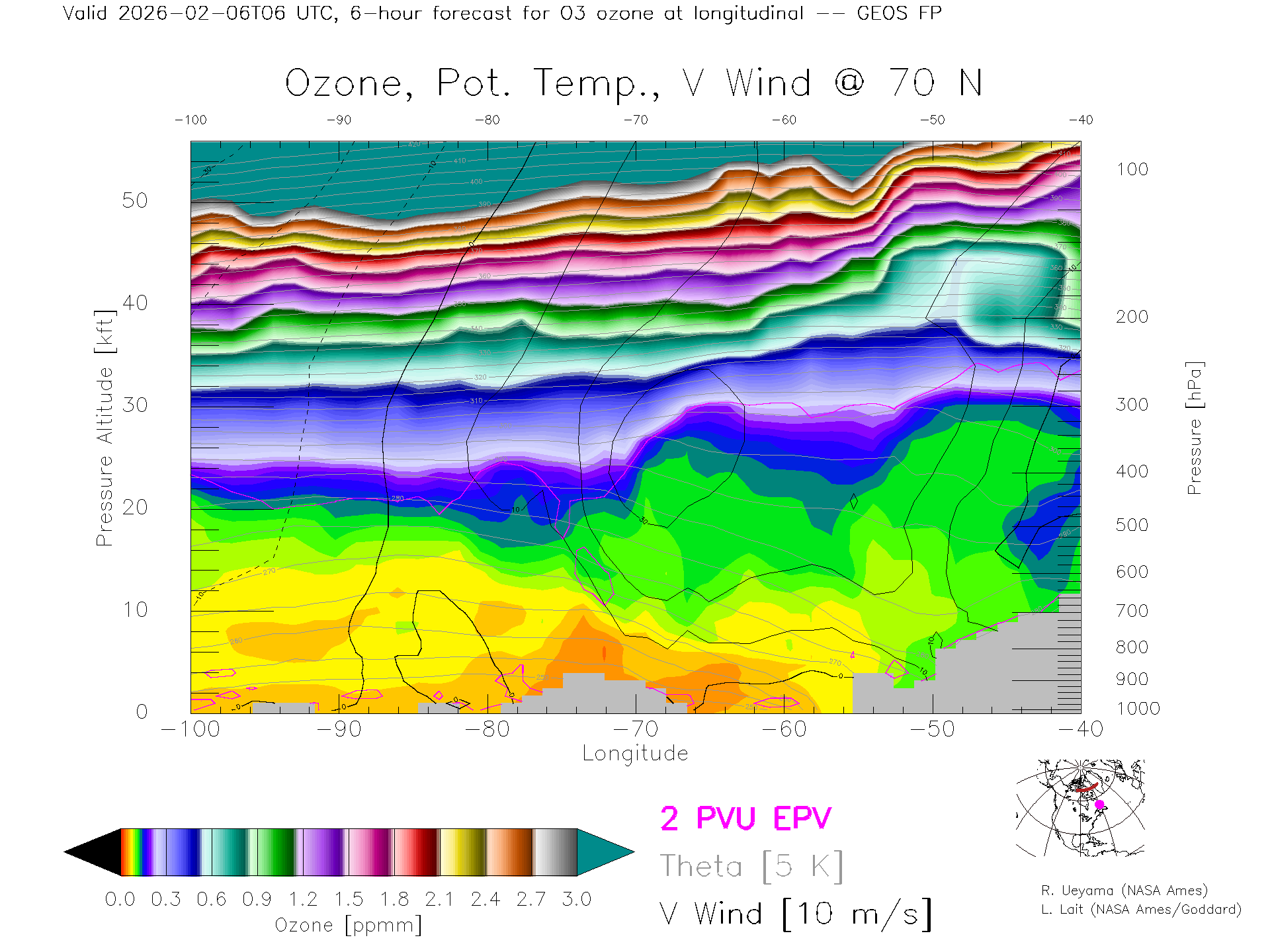 GEOS Forecast Ozone X-Section (70 N)