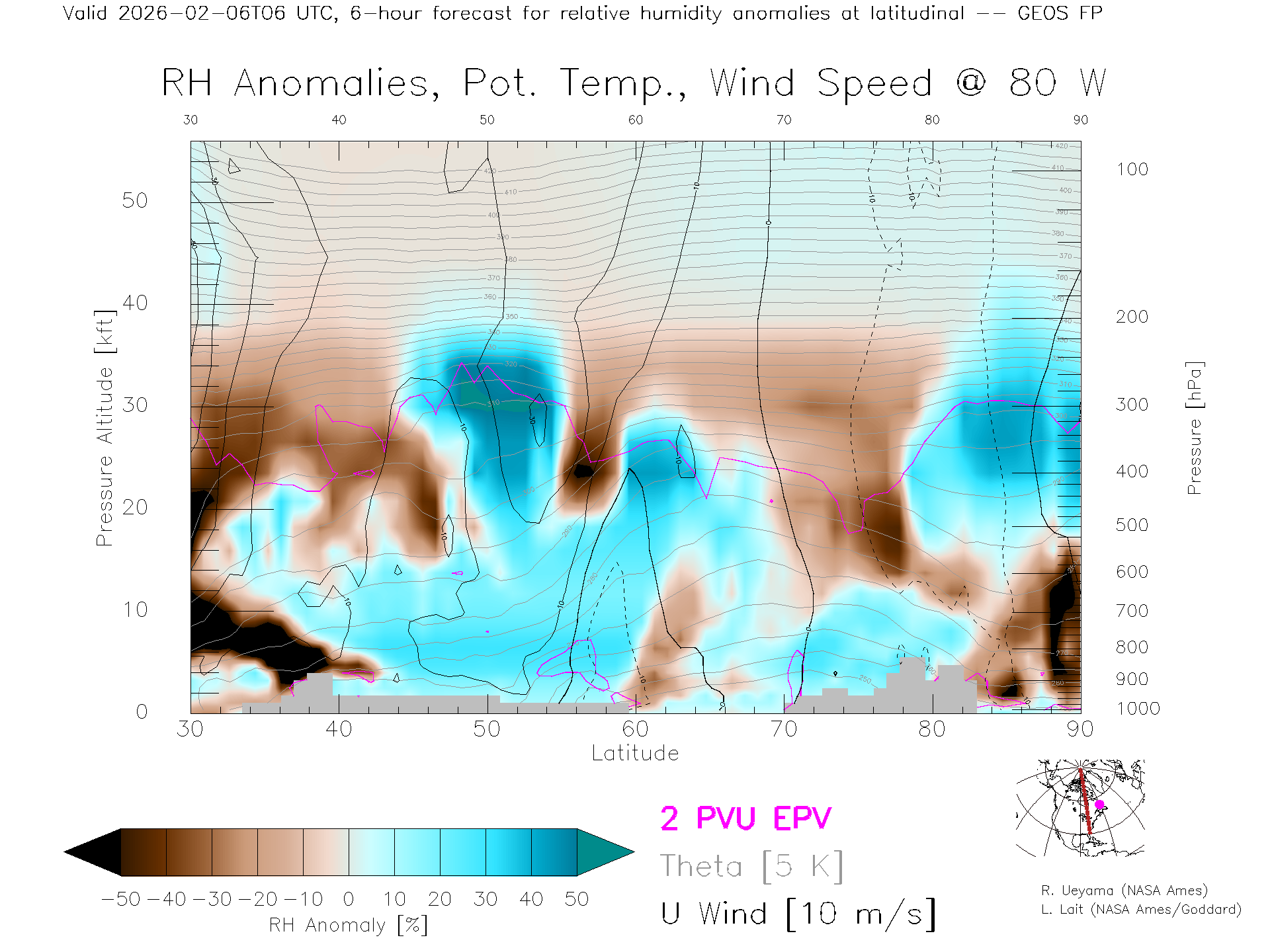 GEOS Forecast Rel. Hum. X-Section (80 W)