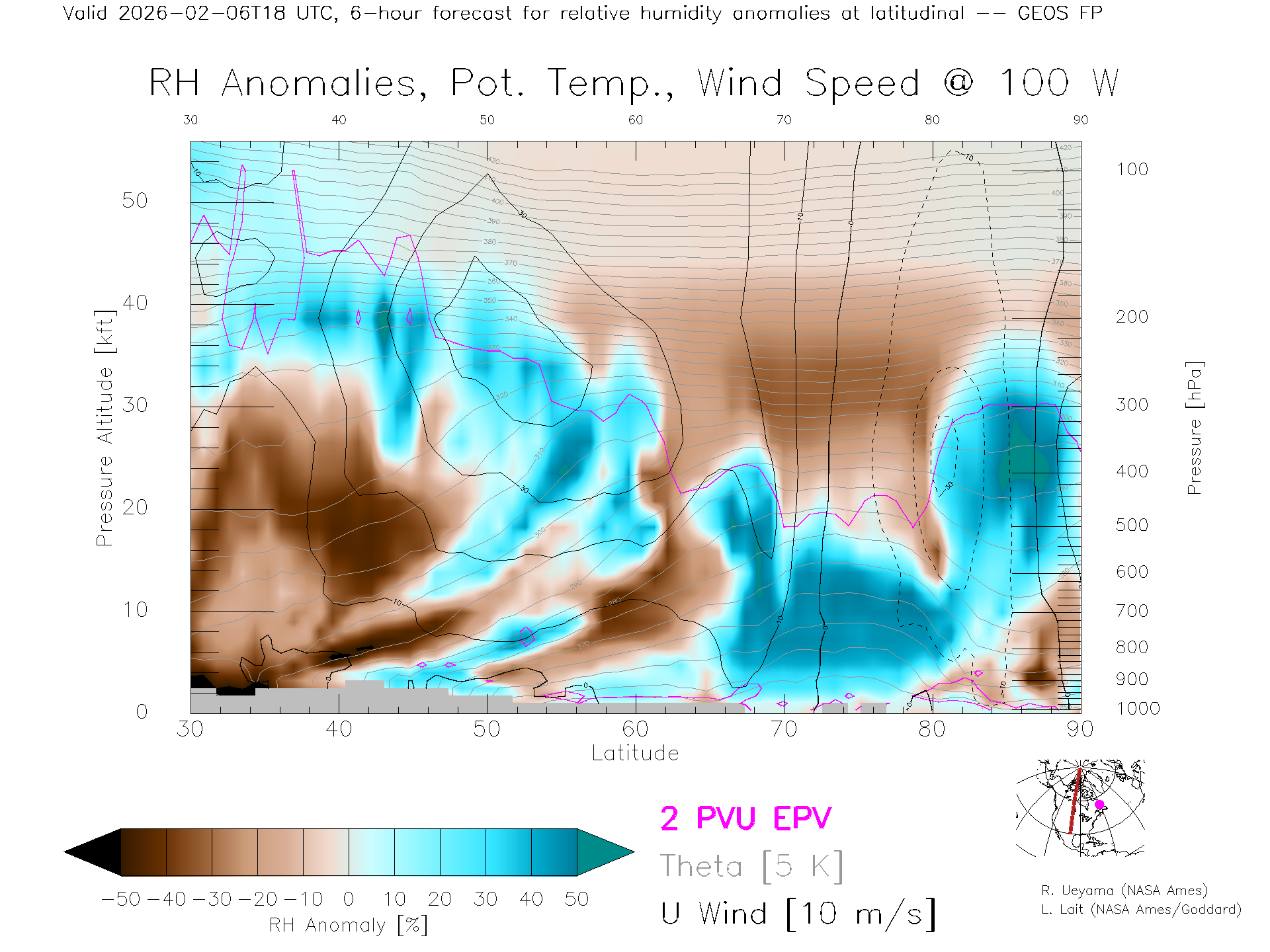GEOS Forecast Rel. Hum. X-Section (100 W)