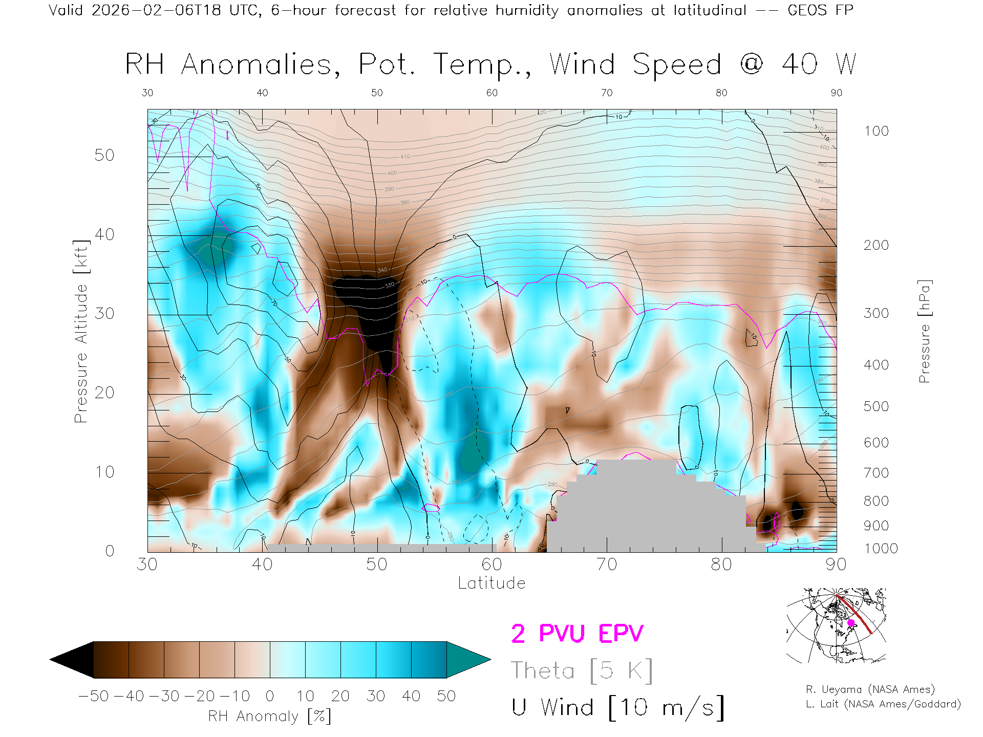 GEOS Forecast Rel. Hum. X-Section (40 W)