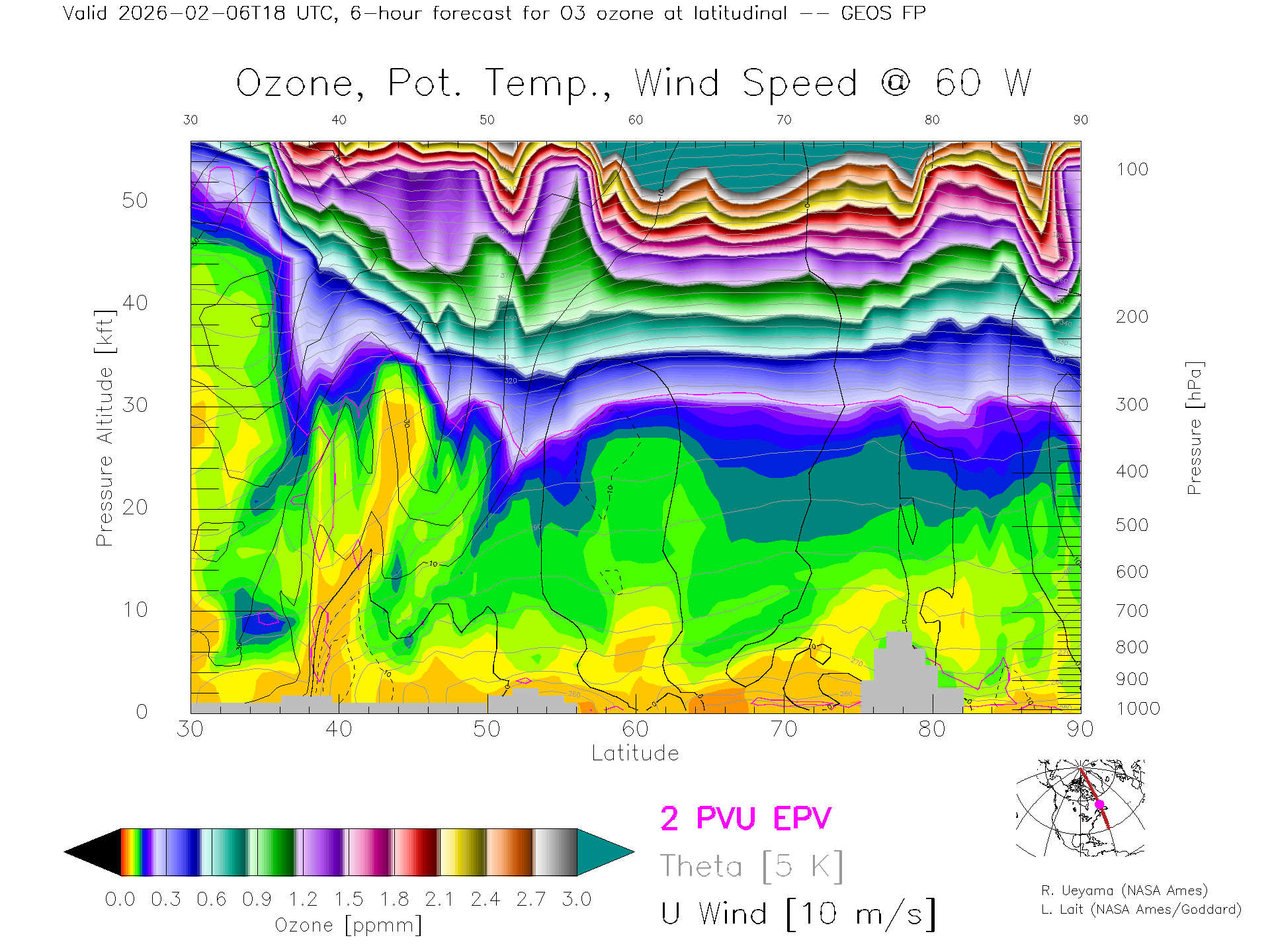 GEOS Forecast Ozone X-Section (60 W)