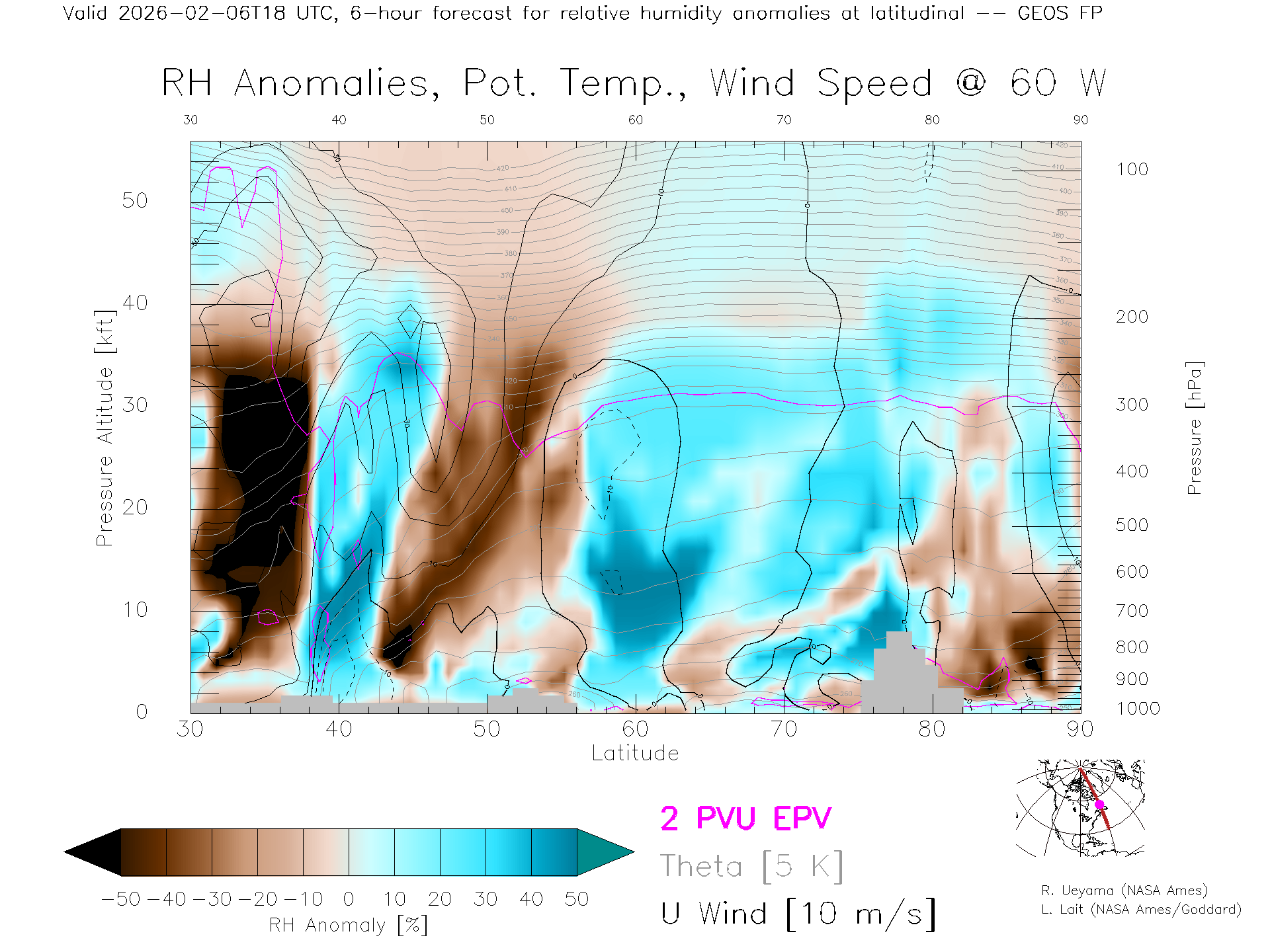 GEOS Forecast Rel. Hum. X-Section (60 W)