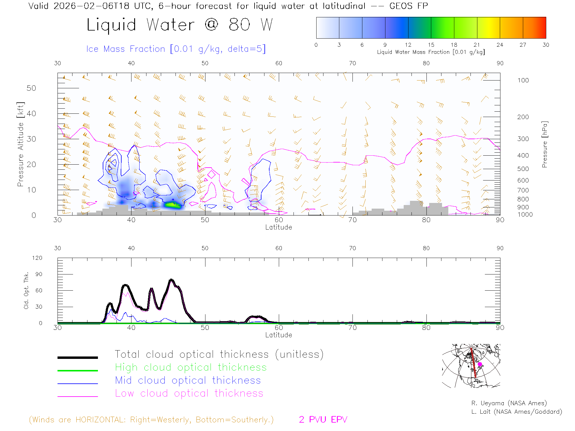 GEOS Forecast Cloud Water Content X-Section (80 W)