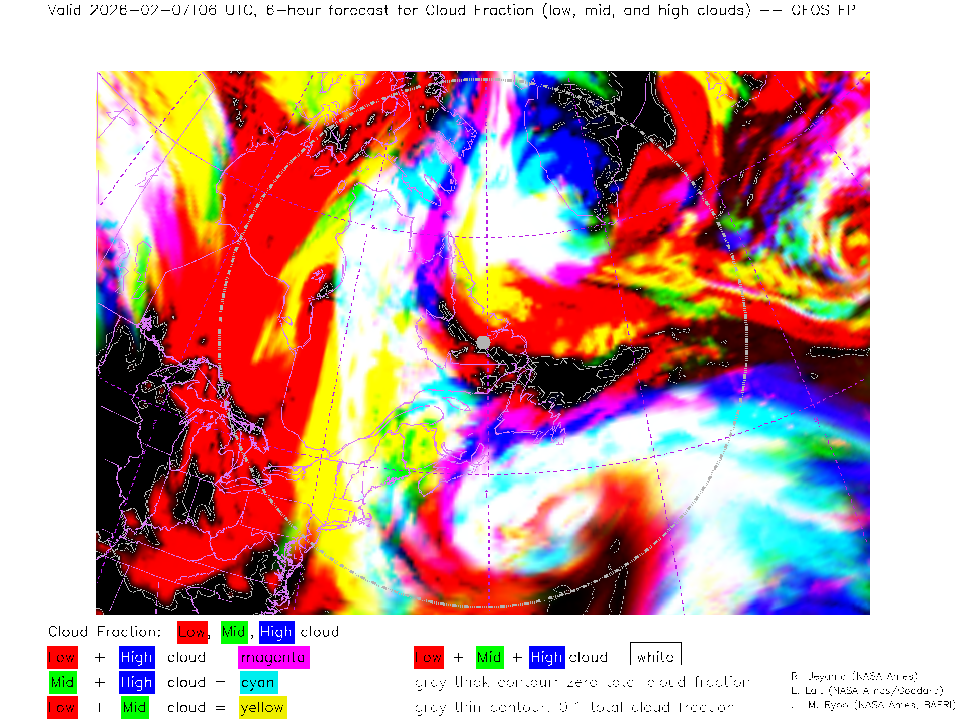 GEOS Forecast Low-, Mid- and High-level Cloud Fraction