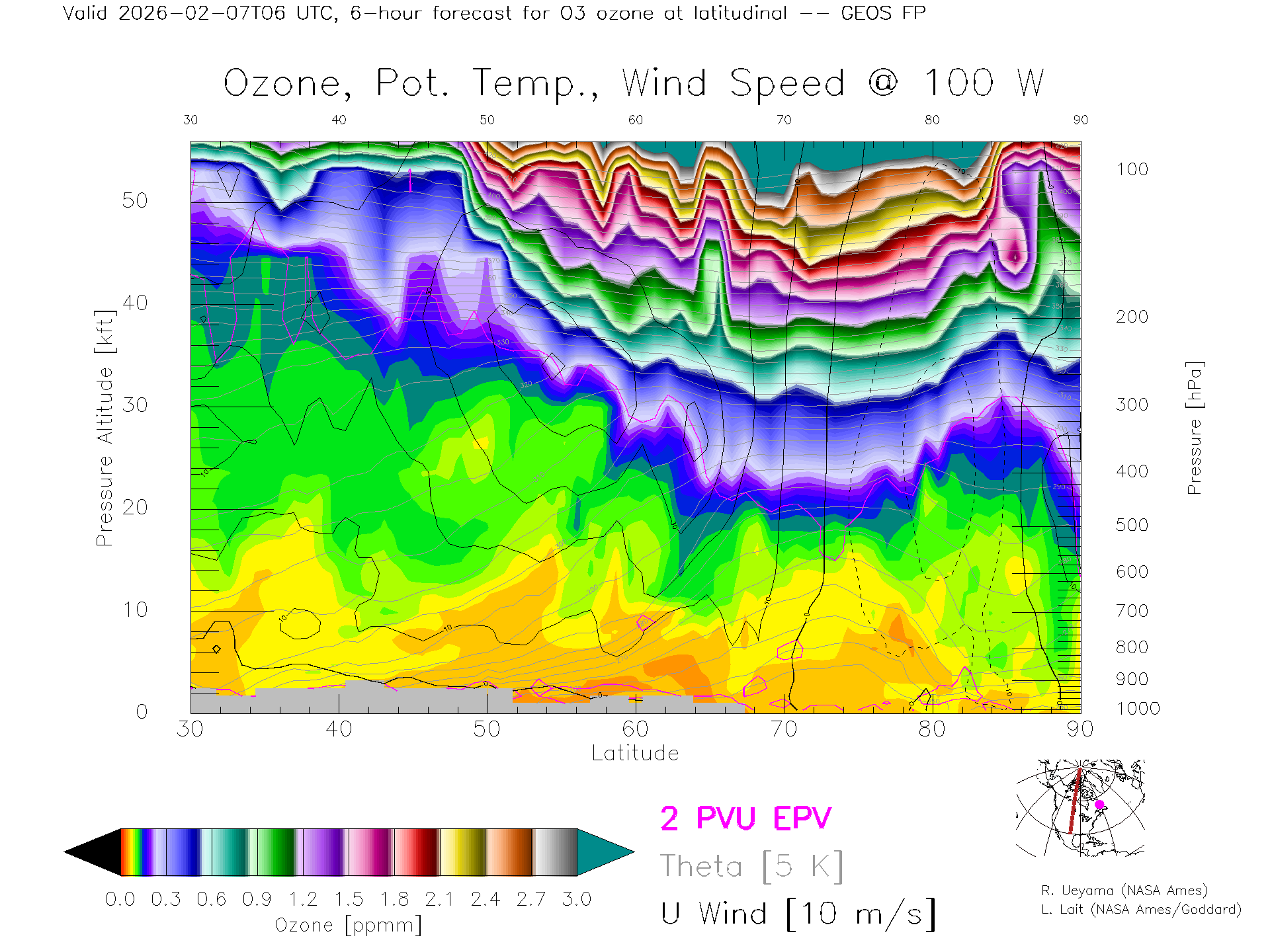 GEOS Forecast Ozone X-Section (100 W)
