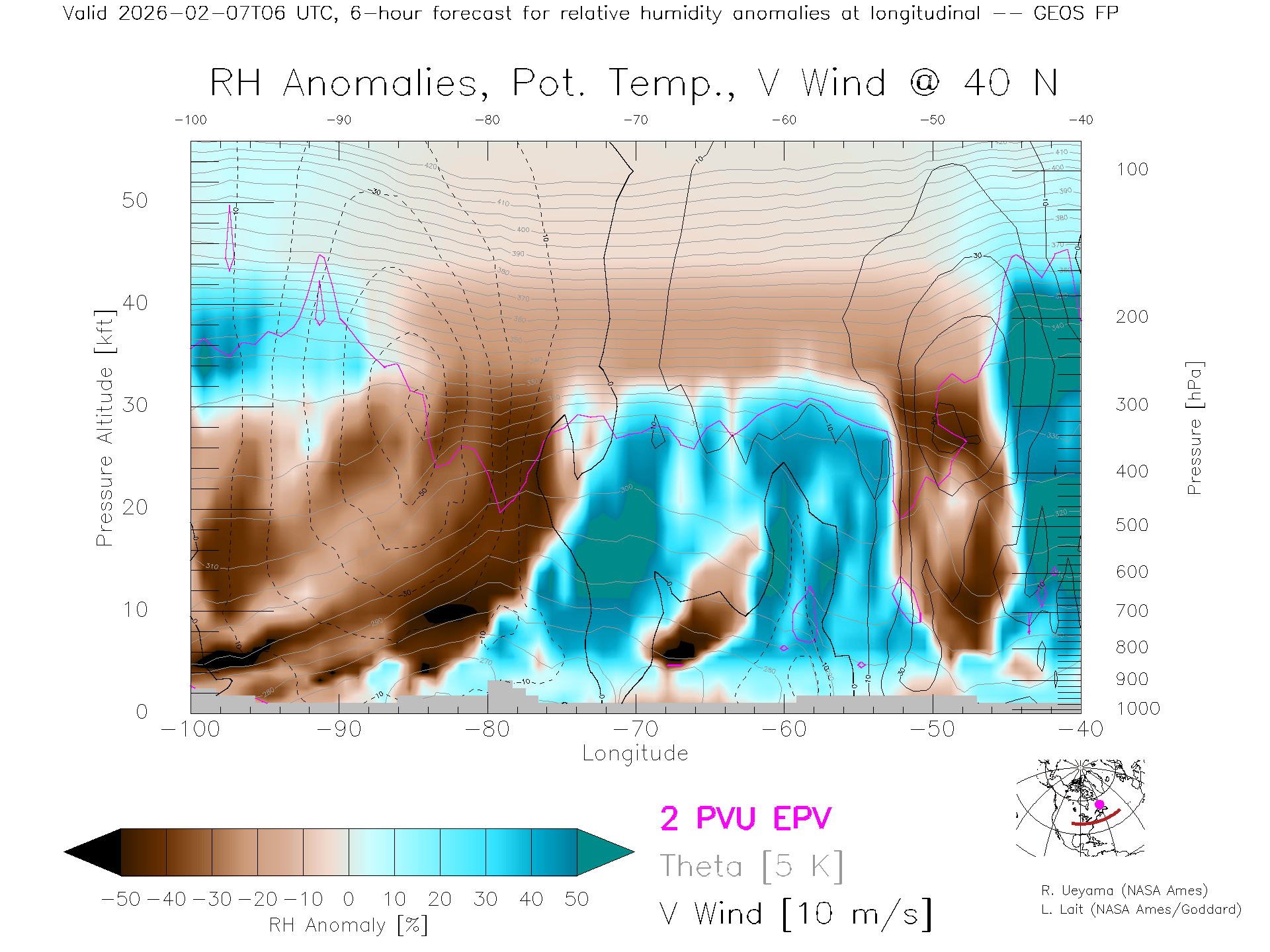 GEOS Forecast Rel. Hum. X-Section (40 N)