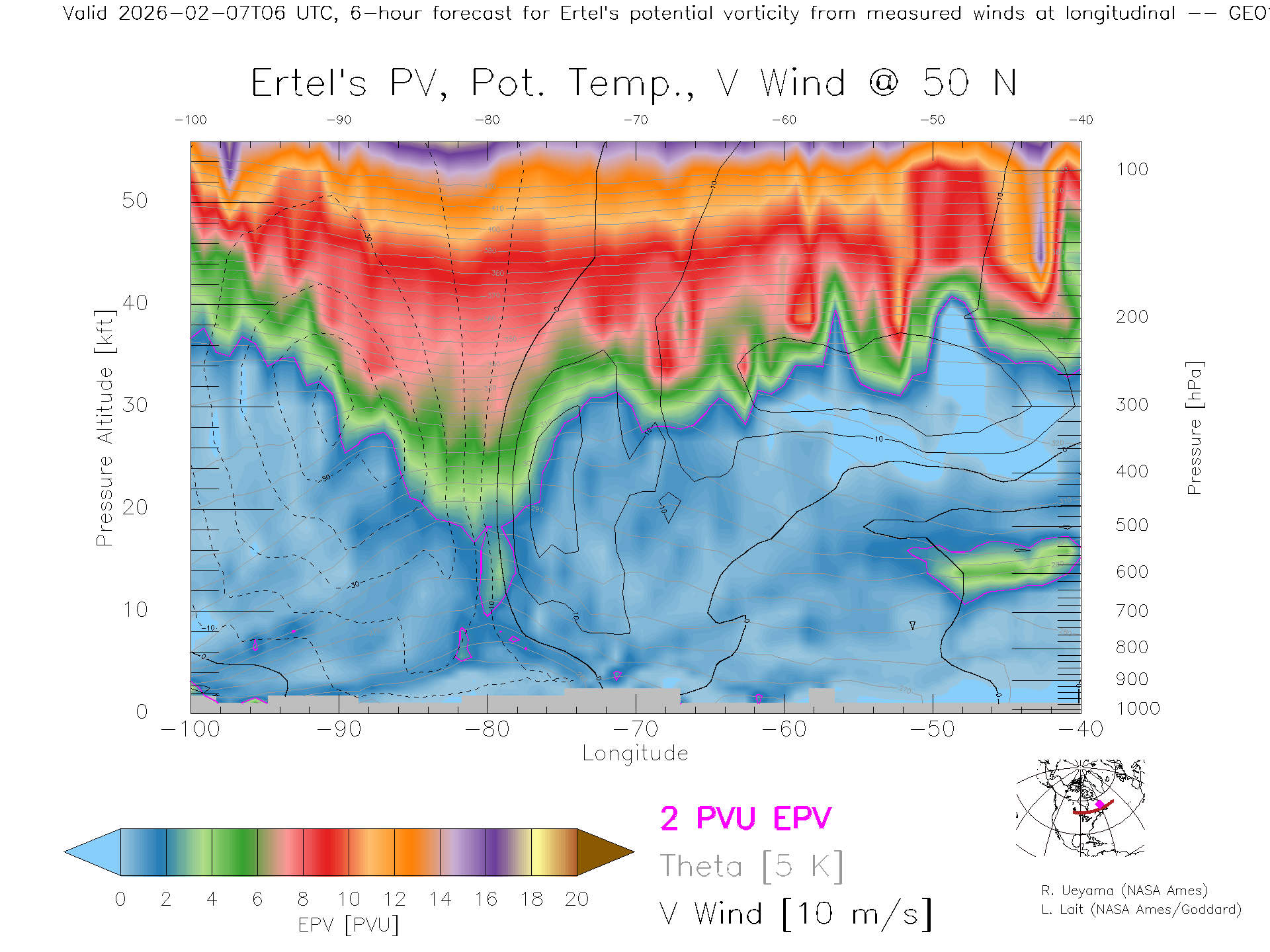 GEOS Forecast PV X-Section (50 N)