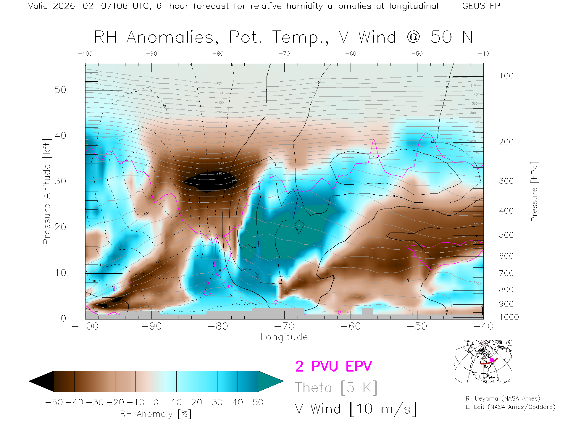 GEOS Forecast Rel. Hum. X-Section (50 N)