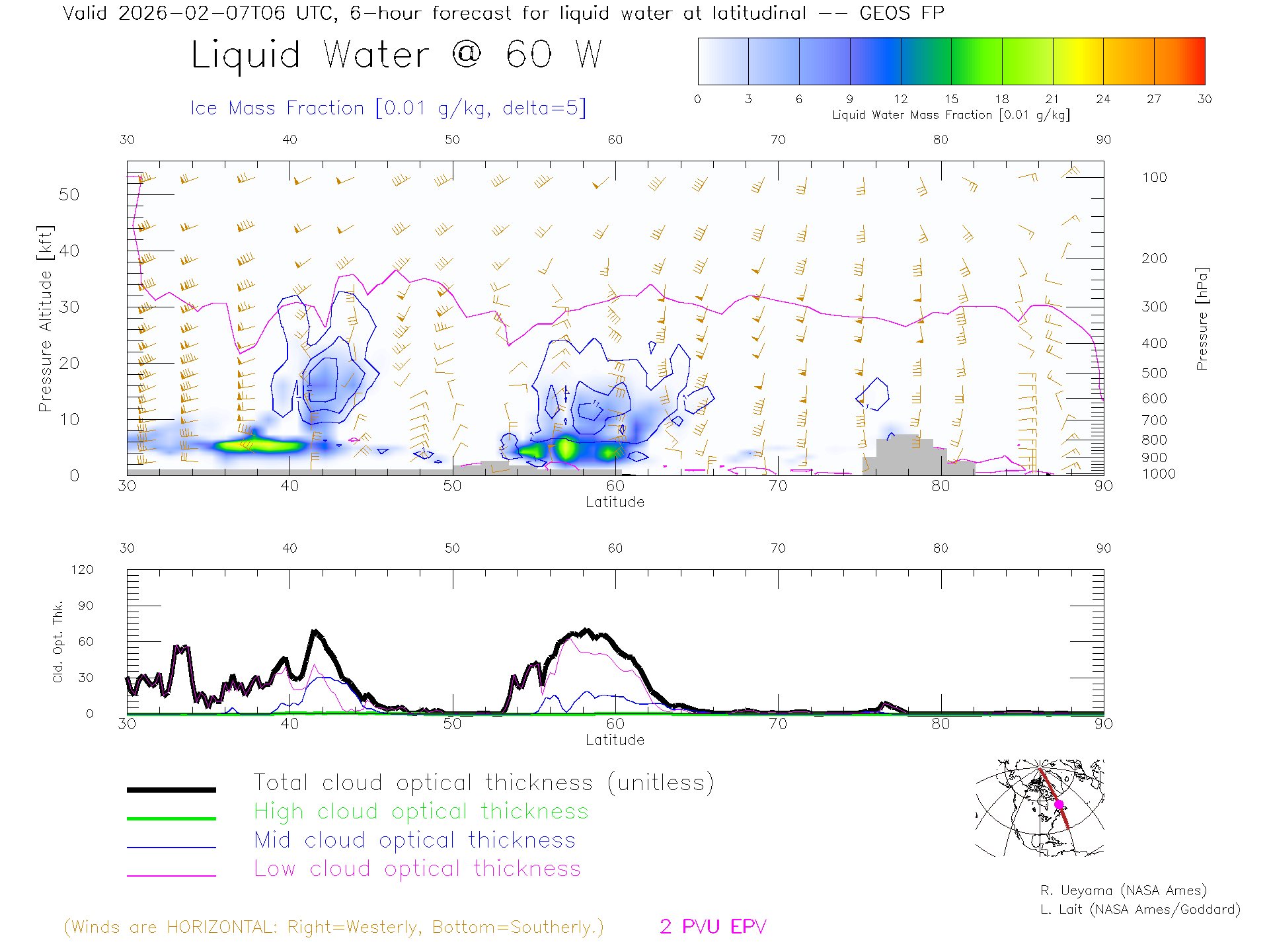GEOS Forecast Cloud Water Content X-Section (60 W)
