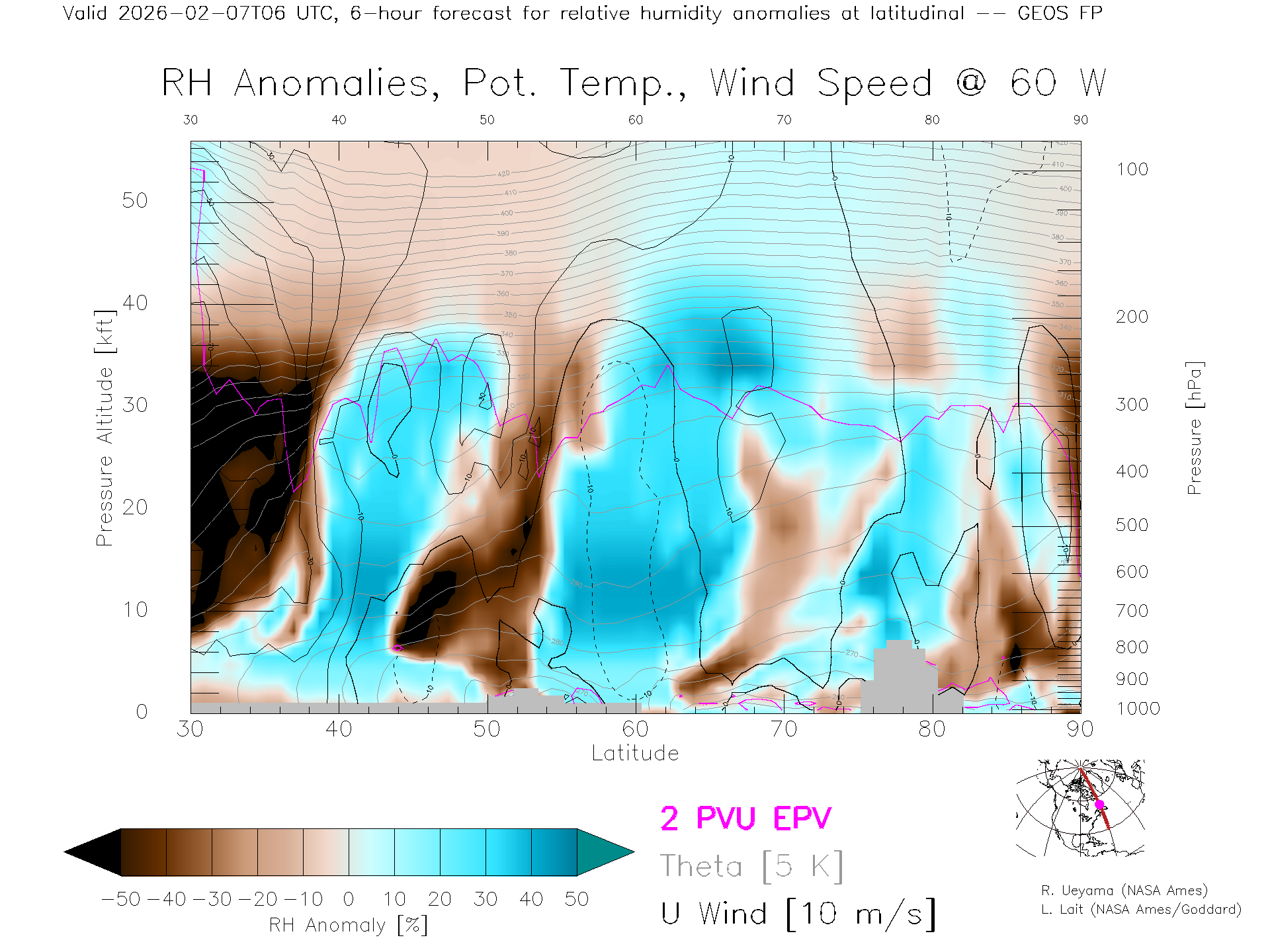 GEOS Forecast Rel. Hum. X-Section (60 W)