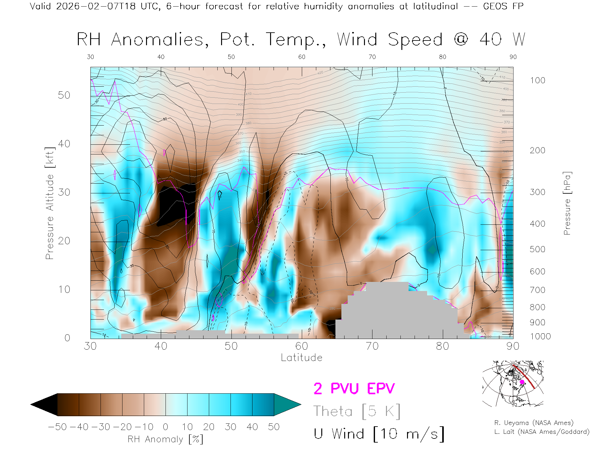 GEOS Forecast Rel. Hum. X-Section (40 W)
