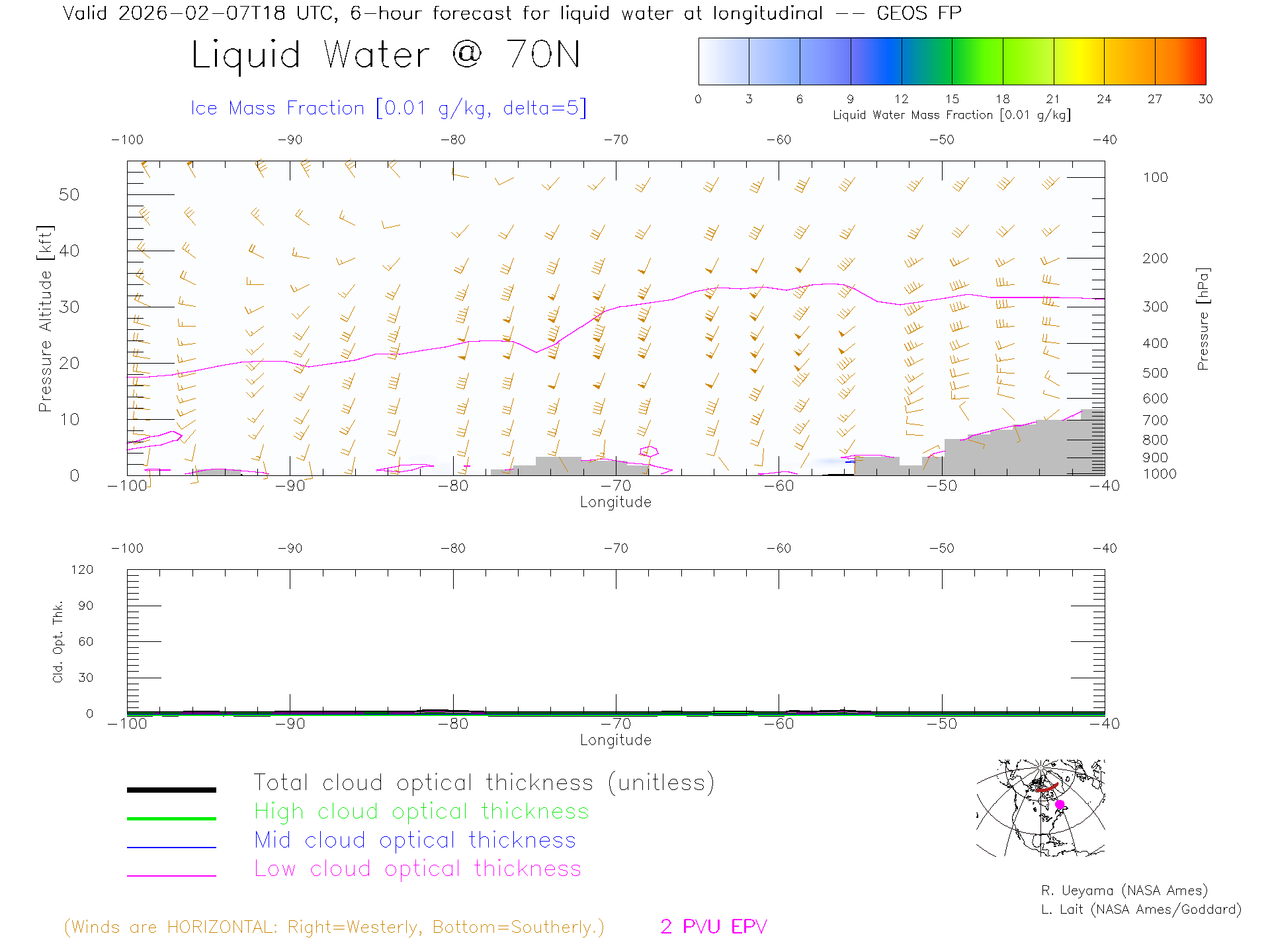 GEOS Forecast Cloud Water Content X-Section (70 N)