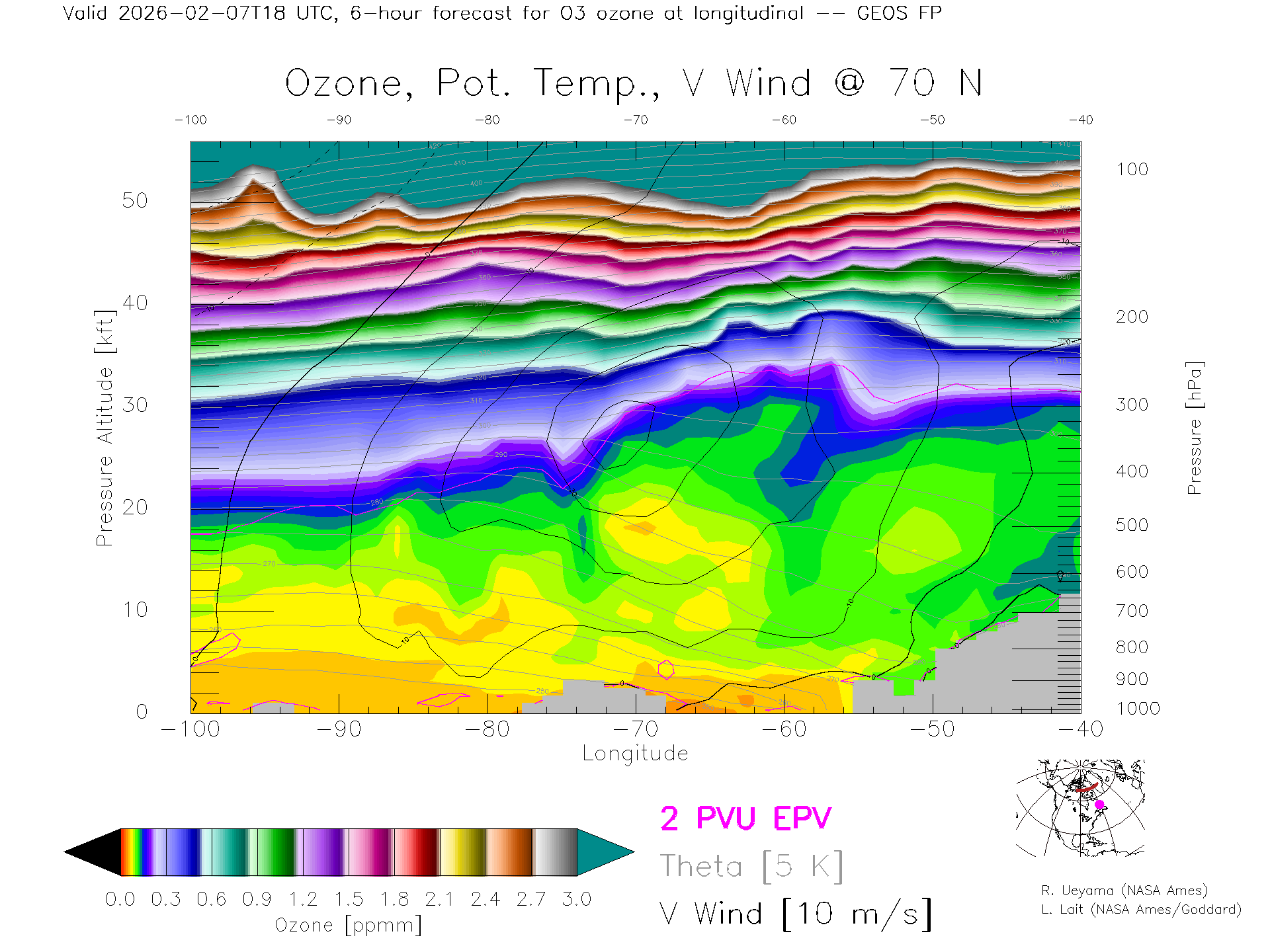 GEOS Forecast Ozone X-Section (70 N)