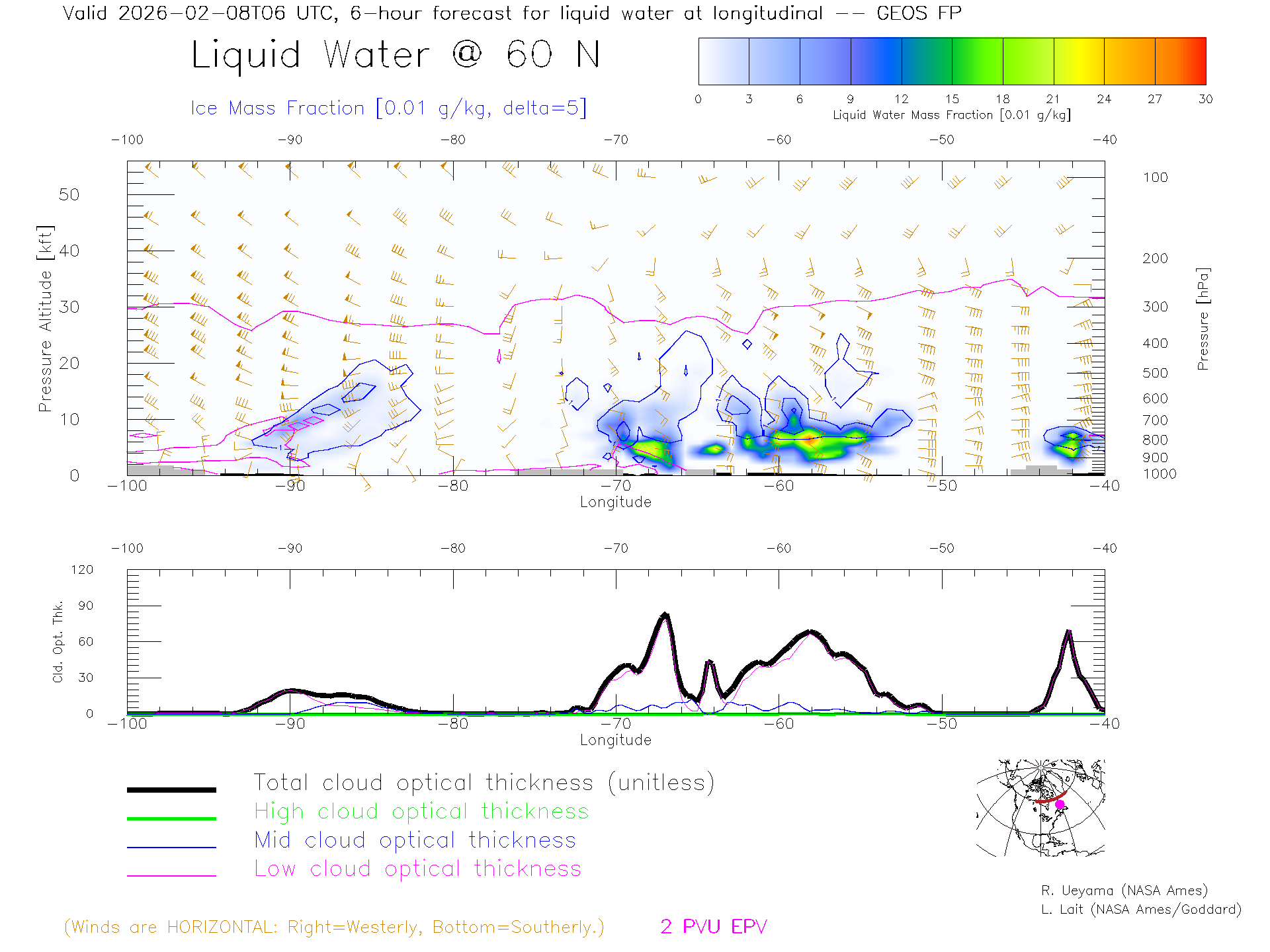 GEOS Forecast Cloud Water Content X-Section (60 N)