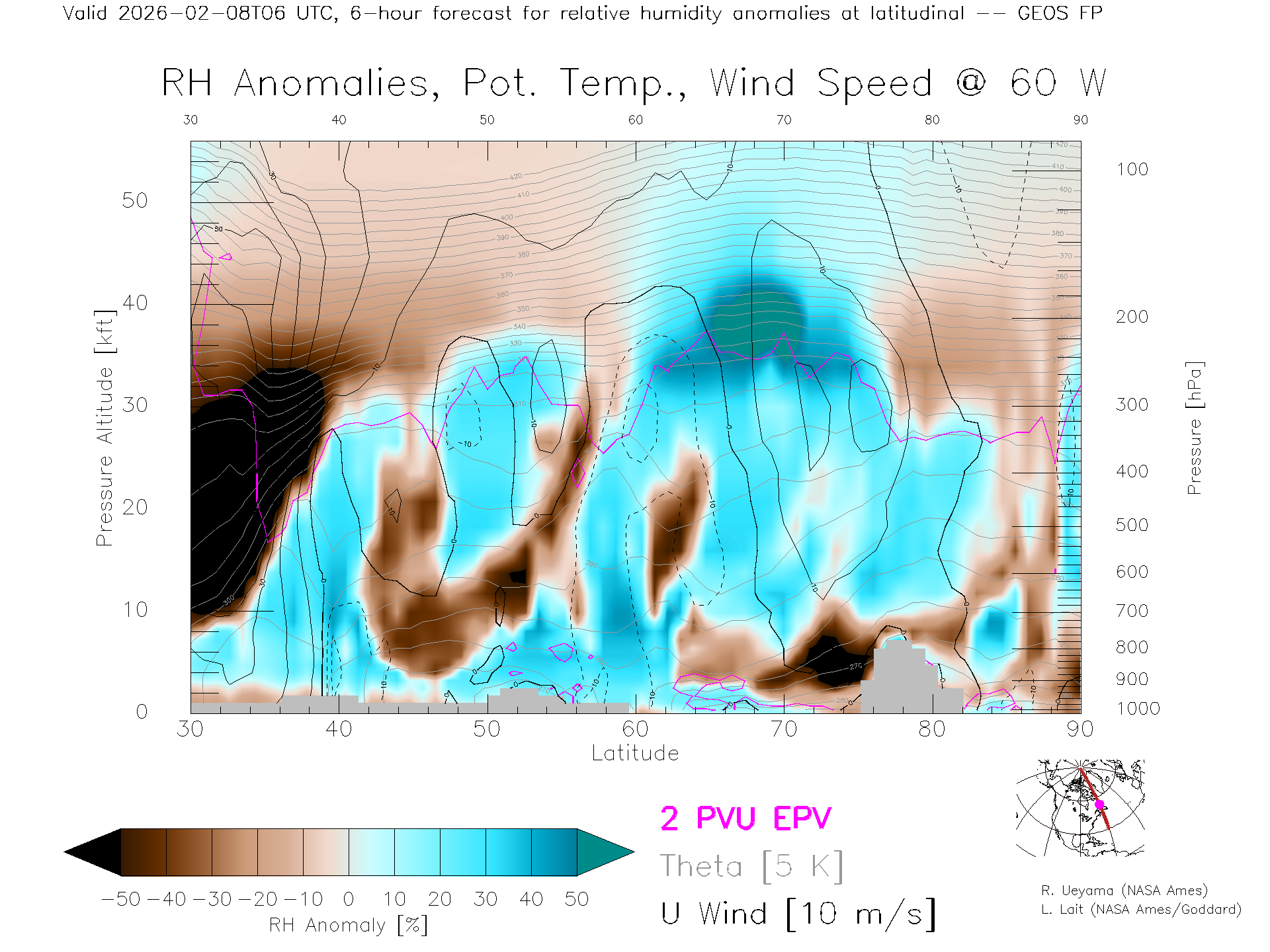 GEOS Forecast Rel. Hum. X-Section (60 W)