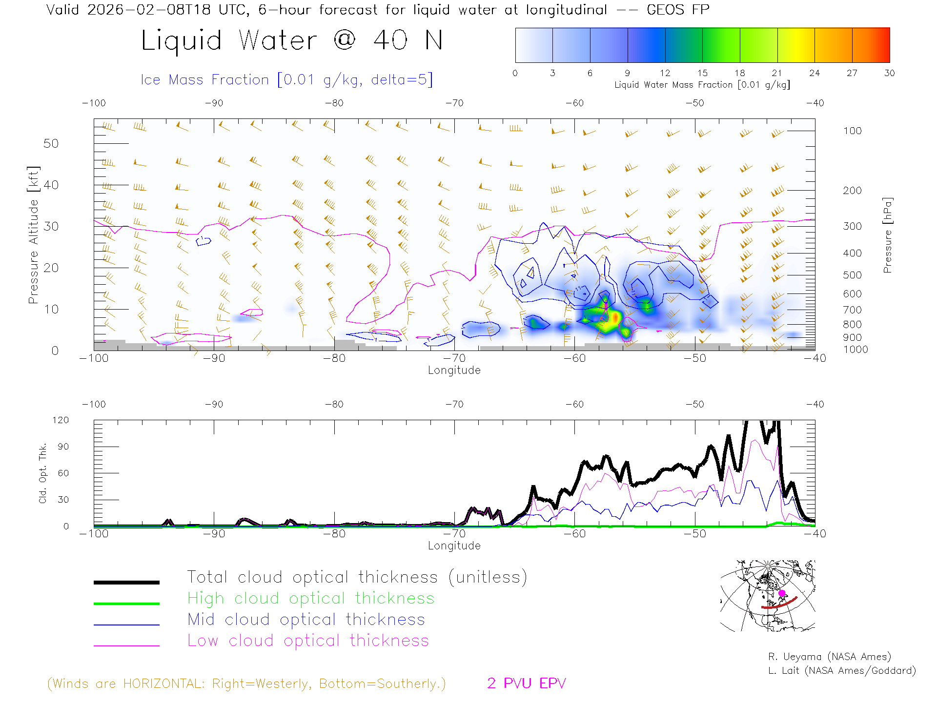 GEOS Forecast Cloud Water Content X-Section (40 N)