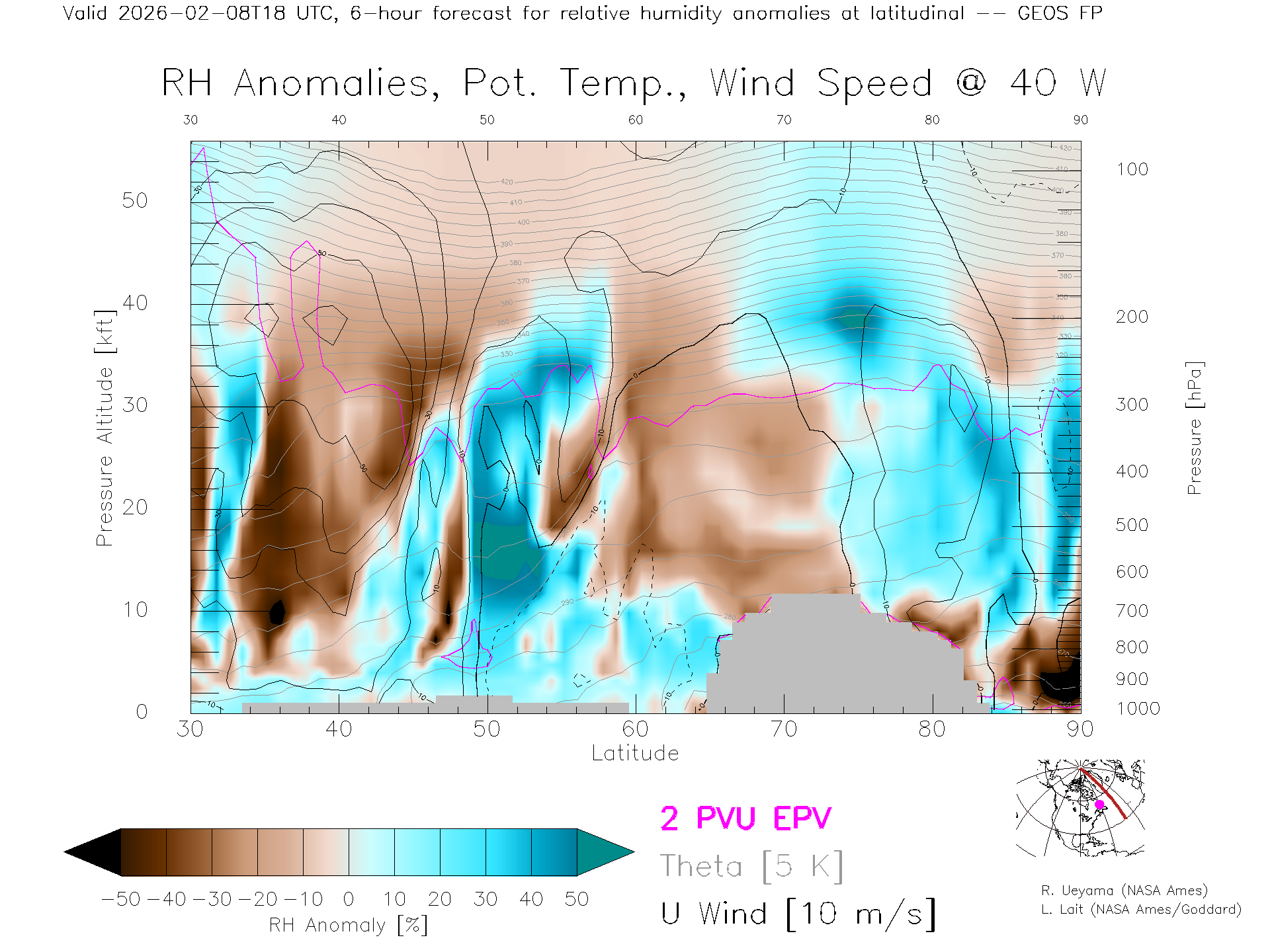 GEOS Forecast Rel. Hum. X-Section (40 W)