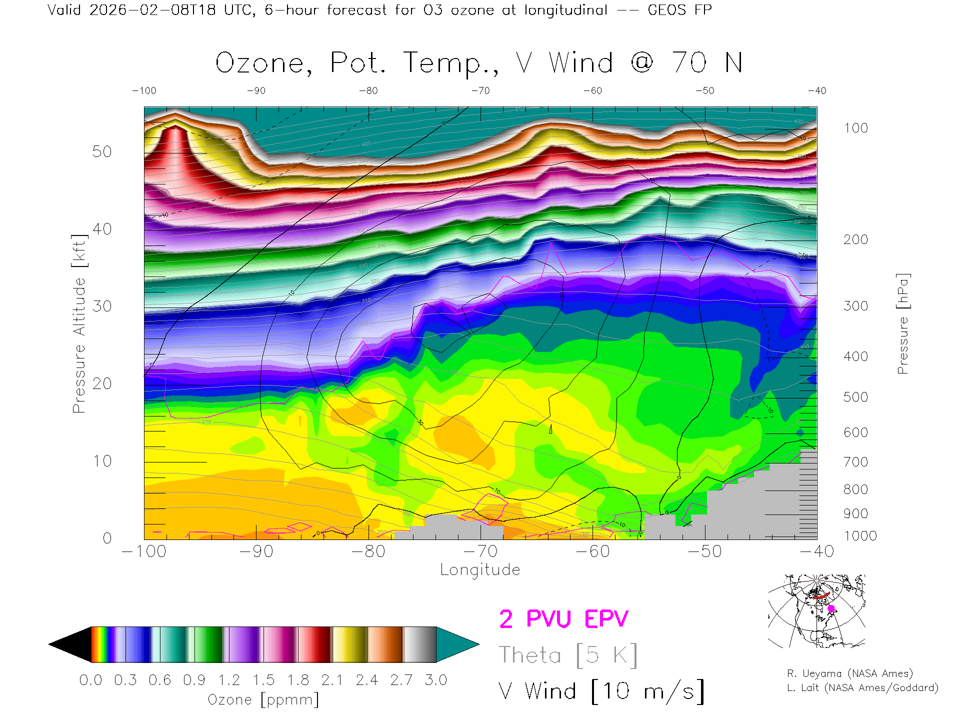 GEOS Forecast Ozone X-Section (70 N)