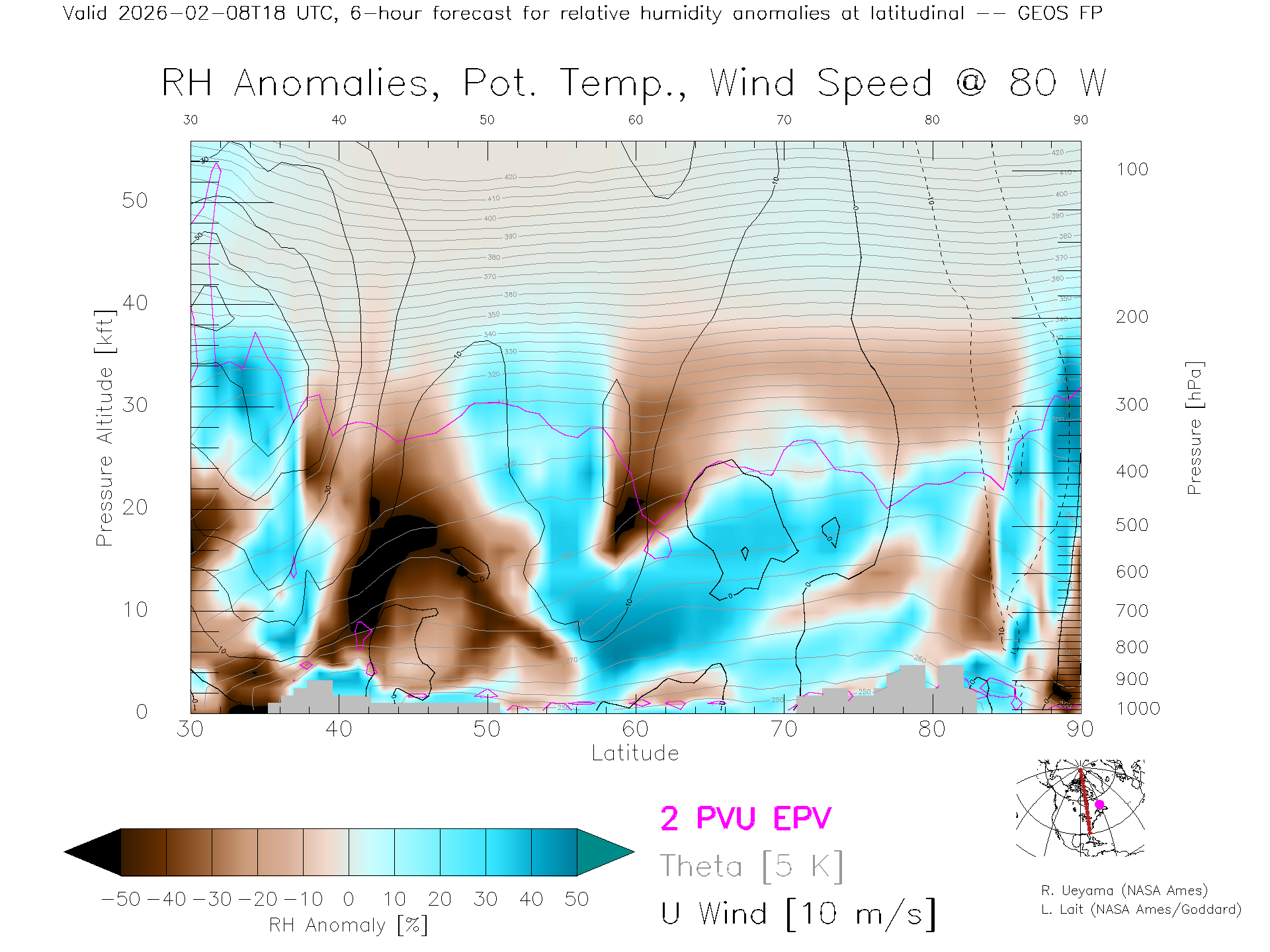 GEOS Forecast Rel. Hum. X-Section (80 W)