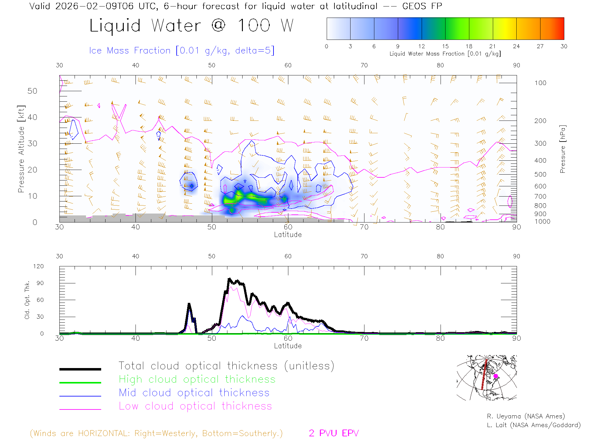 GEOS Forecast Cloud Water Content X-Section (100 W)