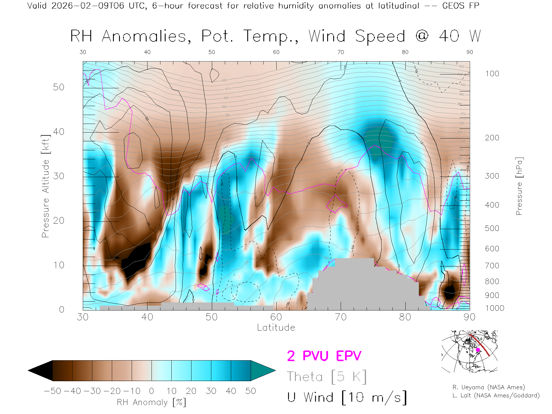 GEOS Forecast Rel. Hum. X-Section (40 W)